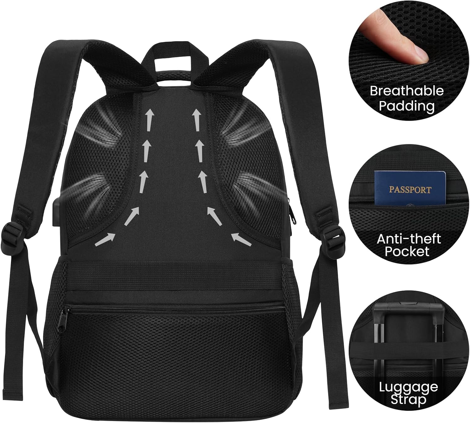 - 【ERGONOMICS & LUGGAGE STRAP】Comfortable airflow back design with thick and soft breathable padding gives you maximum back support. Adjustable shoulder straps can prevent them from slipping, and make the laptop backpack fit your body shape and shoulders better. A luggage strap allows the back pack fit on luggage/suitcase, slide over the luggage upright handle tube for easier carrying.