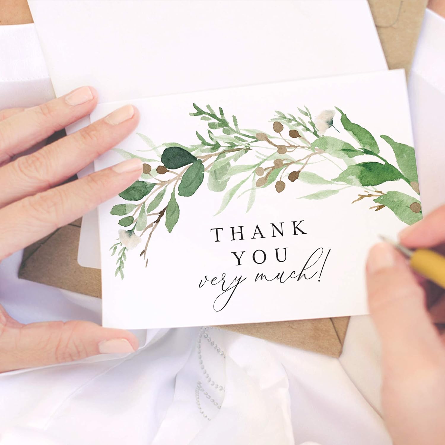 Bliss Collections Thank You Cards - Cards for Weddings, Receptions, Bridal Showers, Baby Showers, Graduations, Special (Rustic Greenery - 25 pieces)