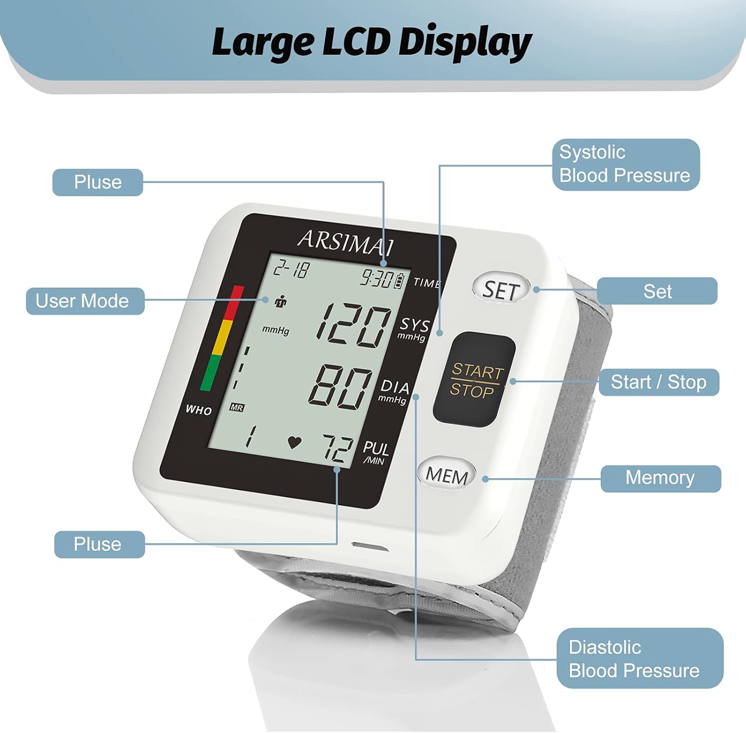Blood Pressure Monitor - Wrist Accurate Automatic High Blood Pressure Monitors Portable LCD Screen with Storage Case and Adjustable Cuff Powered by Battery -Black