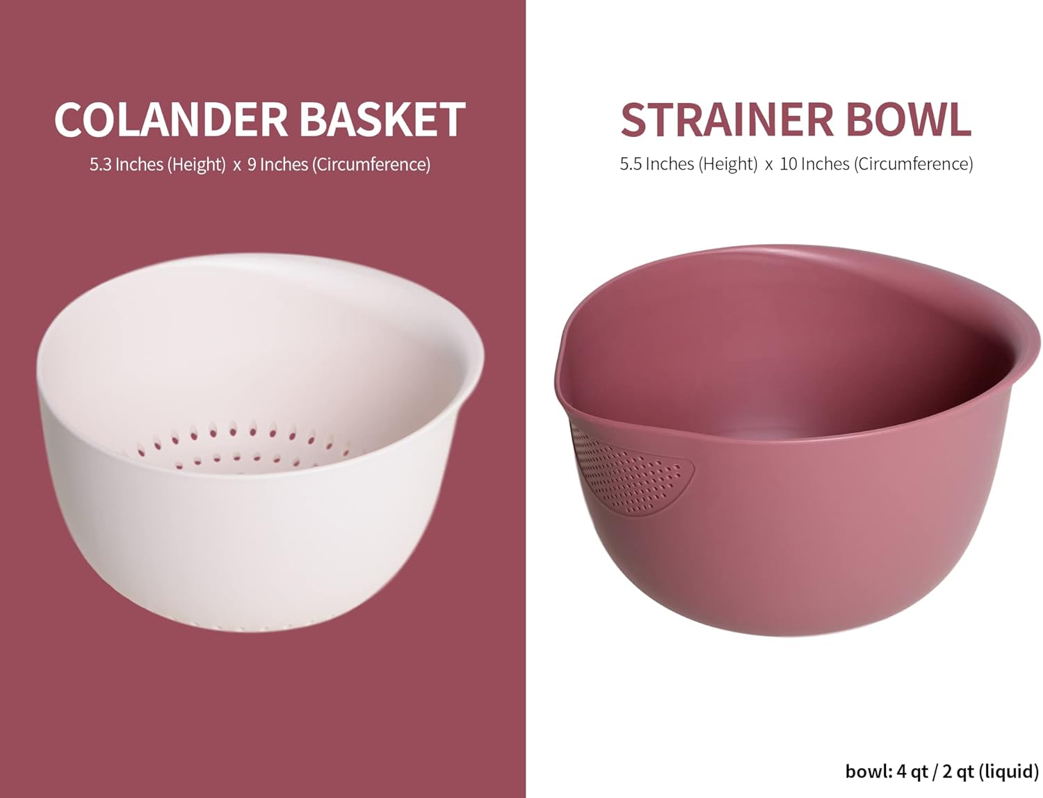 - Multipurpose Bowl and Colander Set – Use the bowl and colander together and separately. The strainer is excellent for rinsing and straining beans and small grains and can also serve as a mixing or salad bowl, while the colander can be used in the sink separately to drain food and as a stylish produce basket throughout your kitchen.