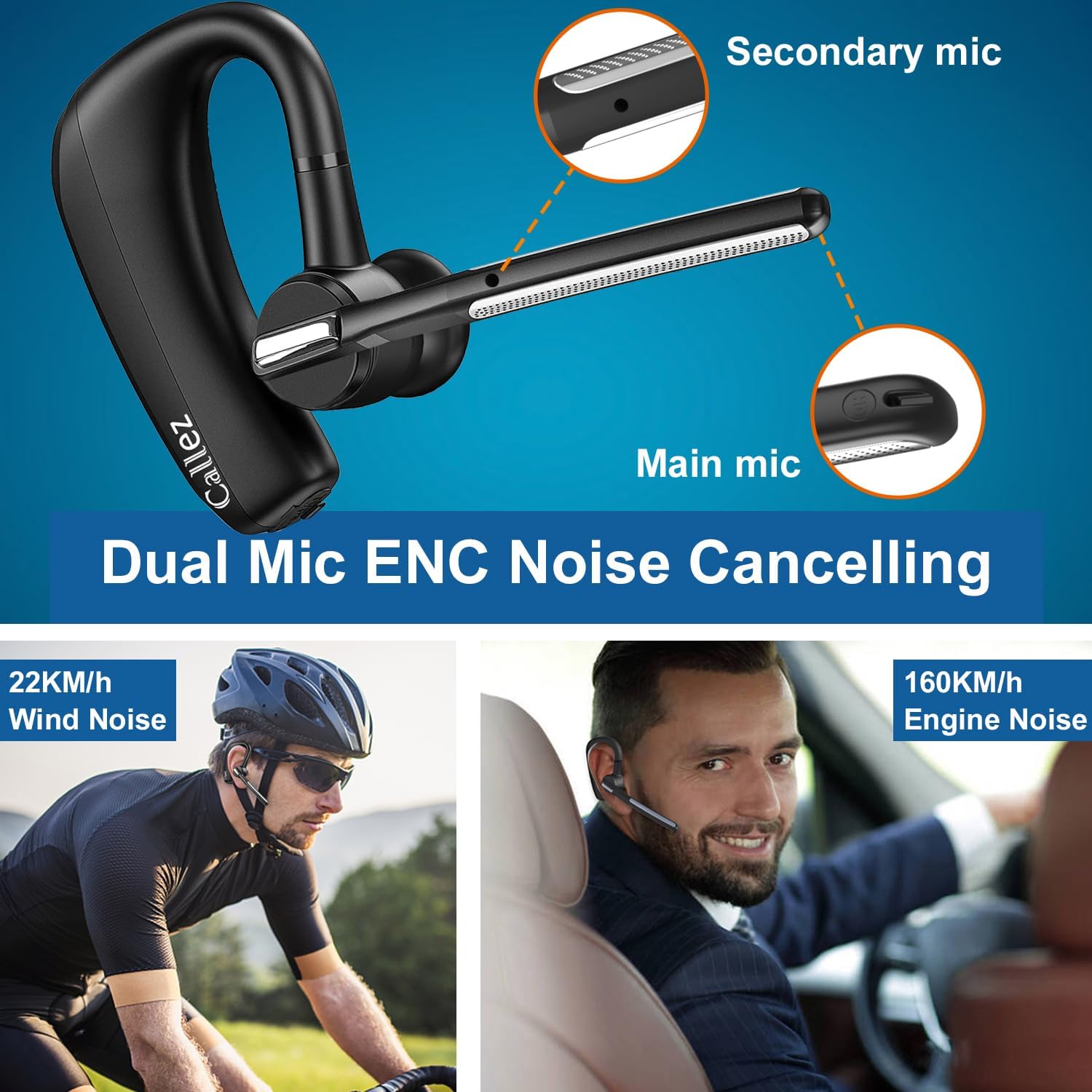 Bluetooth Headset for iPhone Android Cell Phone, Bluetooth Earpiece V5.0 with CVC8.0 Dual Mic Noise Cancelling & Mute/Volume Buttons, Hands-Free Wireless Headset for Trucker Office Business