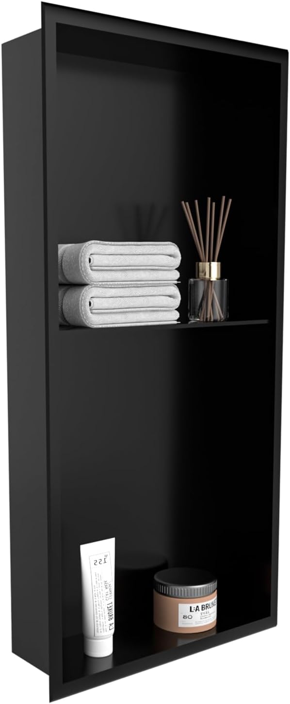 BLYLUND Shower Niche 12" x 24" NO Tile Needed,Matte Black Double Shelf Organizer, Square Corners Wall-Inserted Niche Recessed Shower Shelf Modern Soap Niche for BathroomPL17-B0C3QF5LMZ