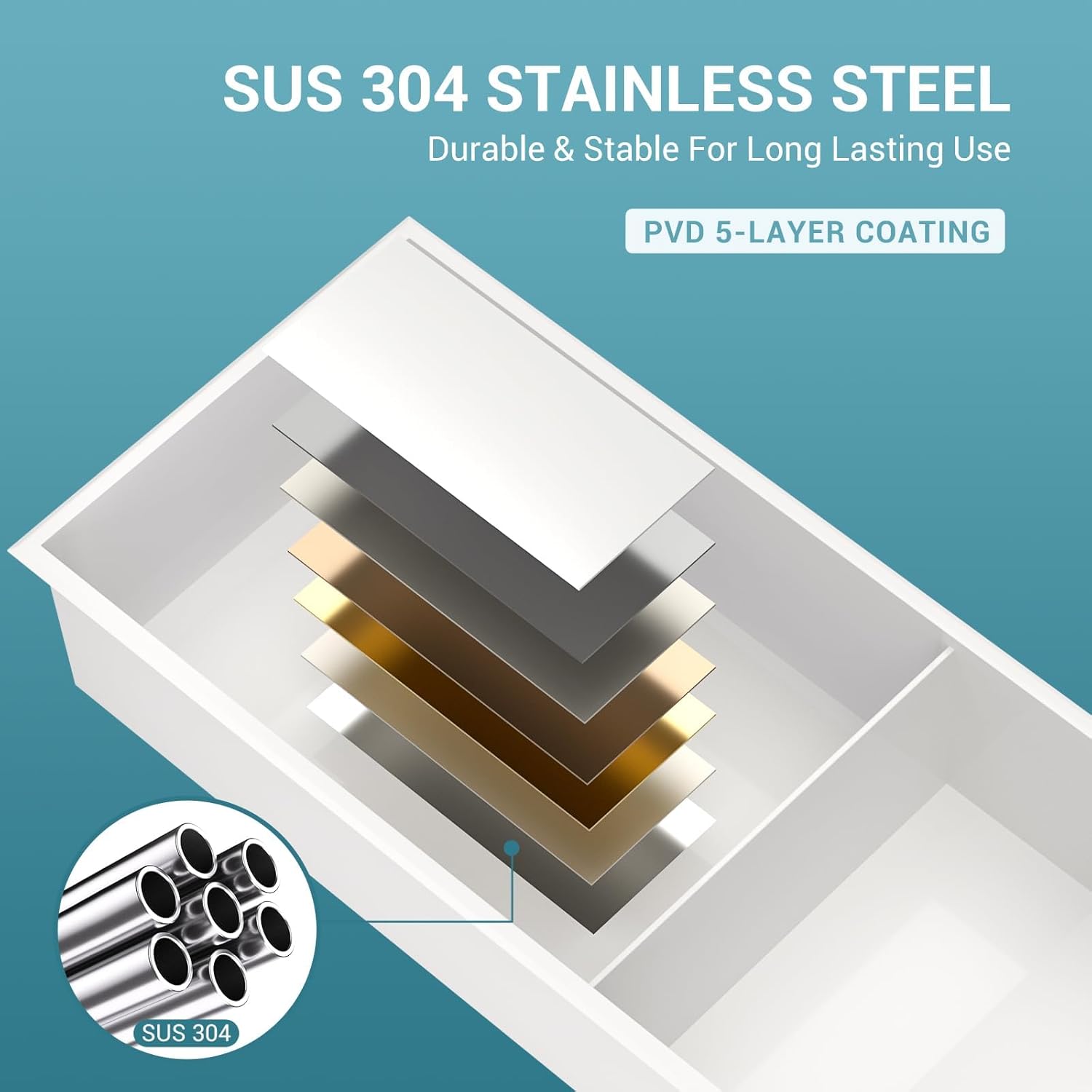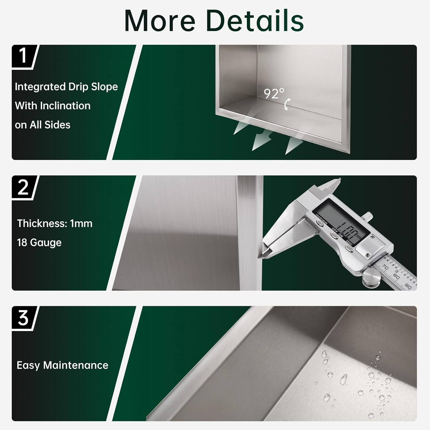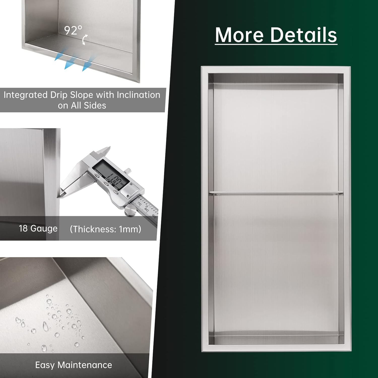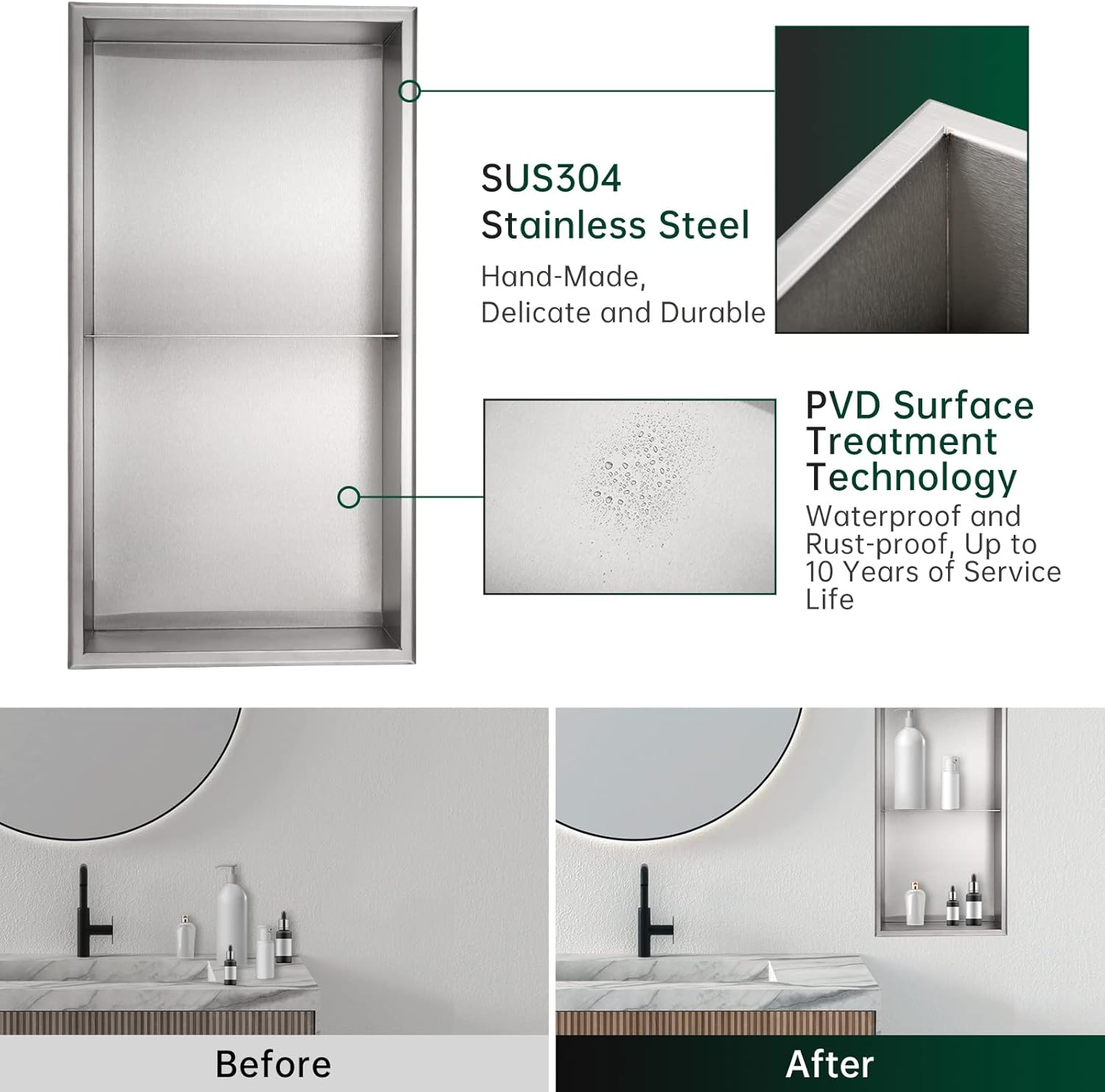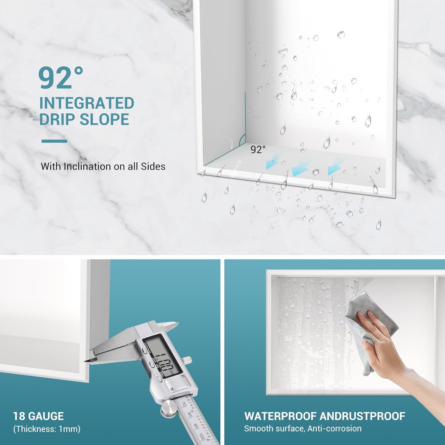 •  【 HEAVY-DUTY MATERIALS】- The blylund shower niche is made of 304 stainless steel.Sturdy and durable, waterproof and rustproof, distinguishes itself from cheaper bathroom caddy with longer life and aesthetics.