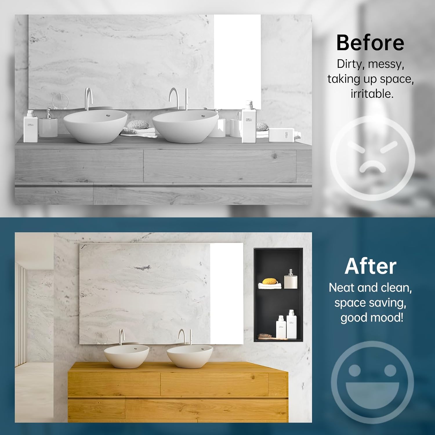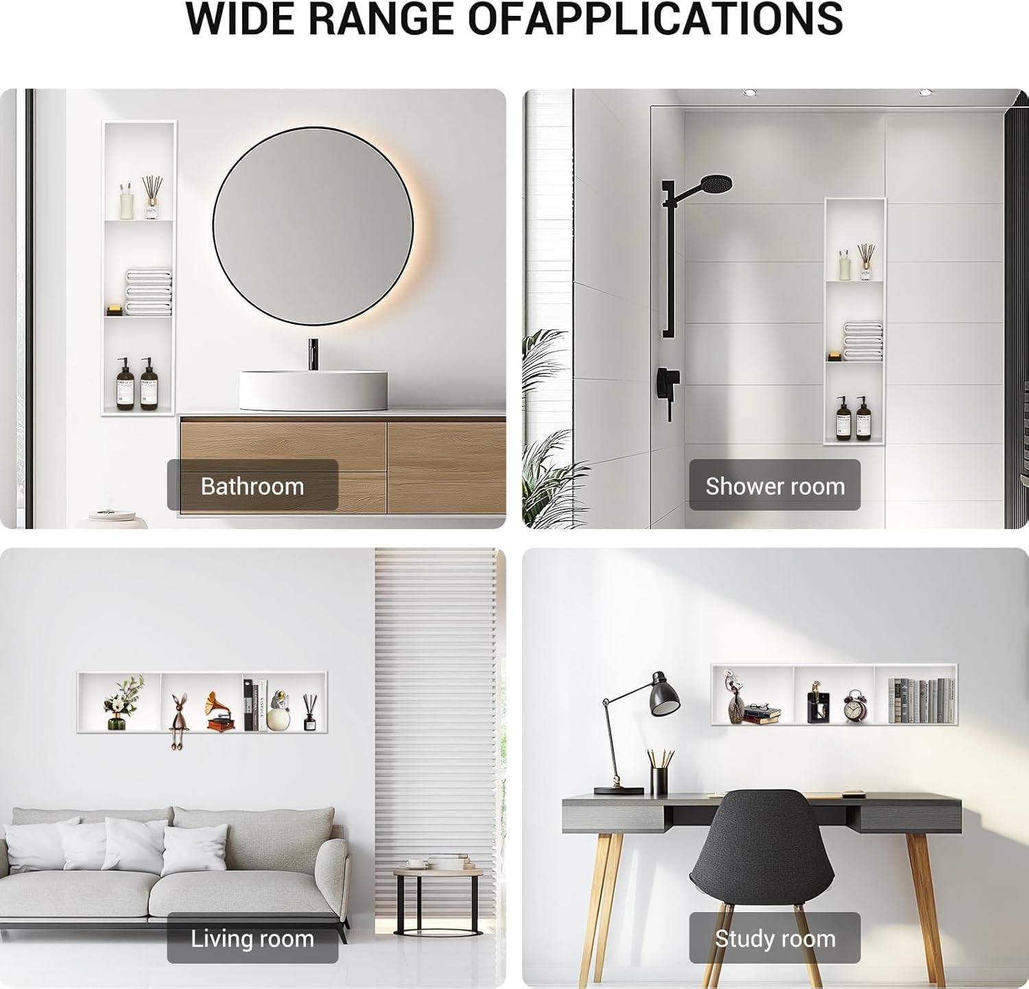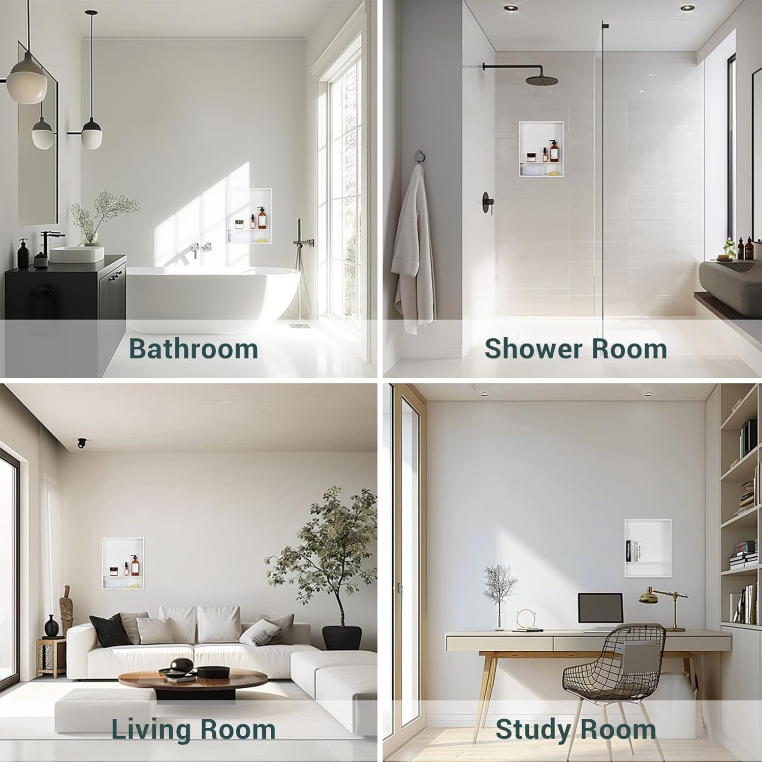• 【MULTI-SCENE USE】- Shower niches can be installed not only in your bathroom for storage, but also in various scenes such as living rooms, kitchens, and dens to provide ornamental and practical features to your home.
