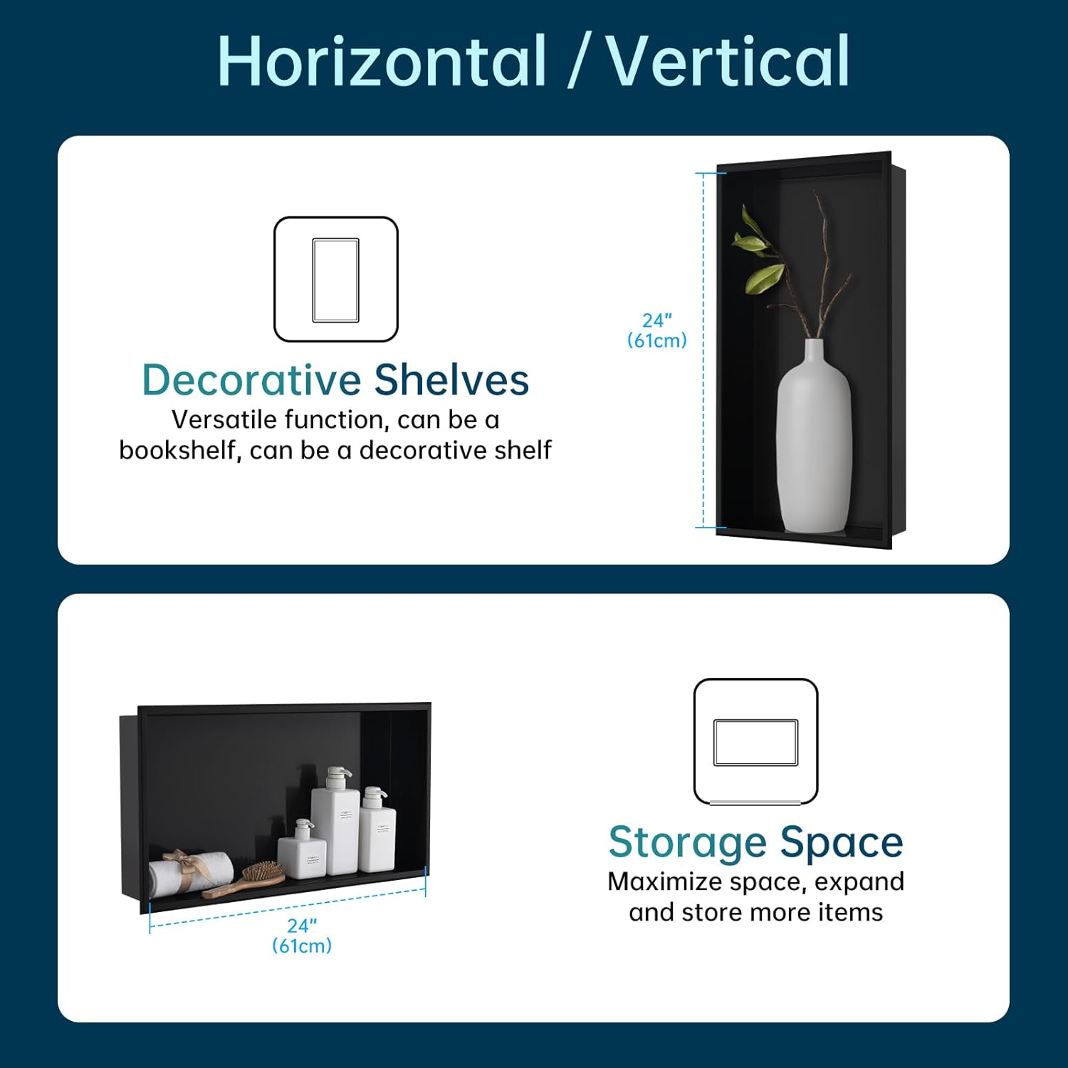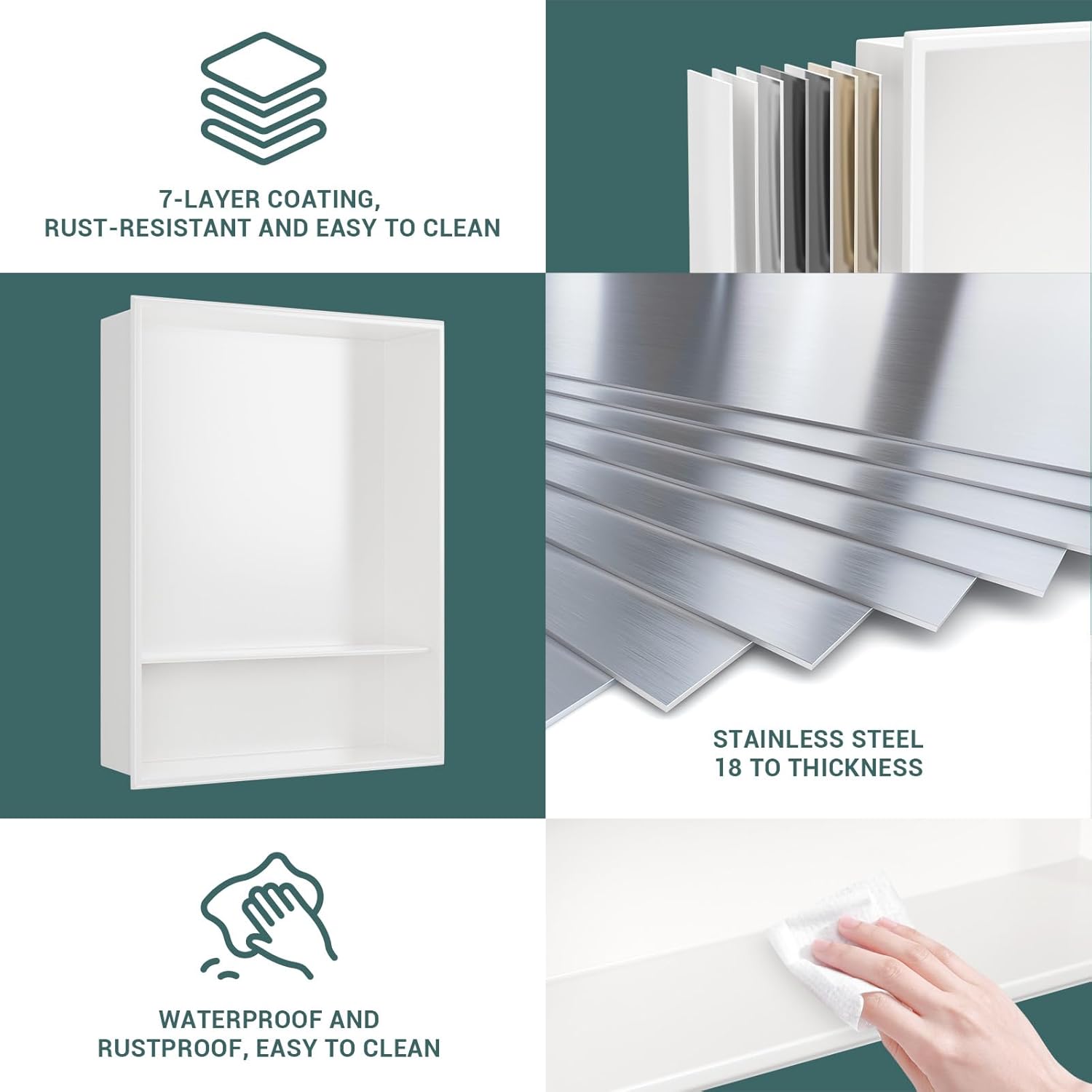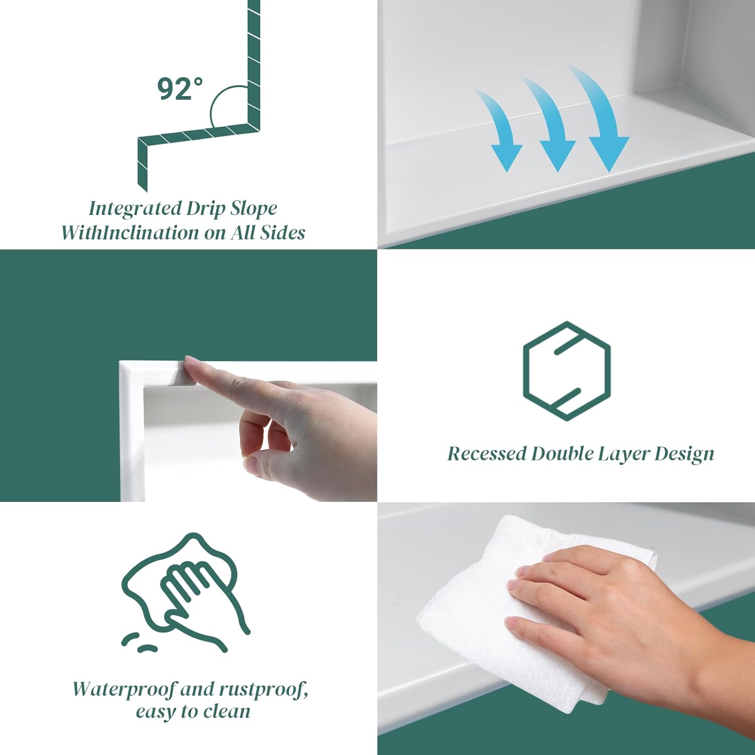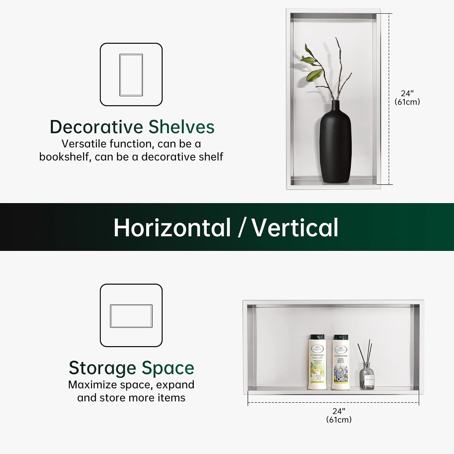 • 【MULTI-SCENE USE】- Shower niches can be installed not only in your bathroom for storage, but also in various scenes such as living rooms, kitchens, and dens to provide ornamental and practical features to your home.