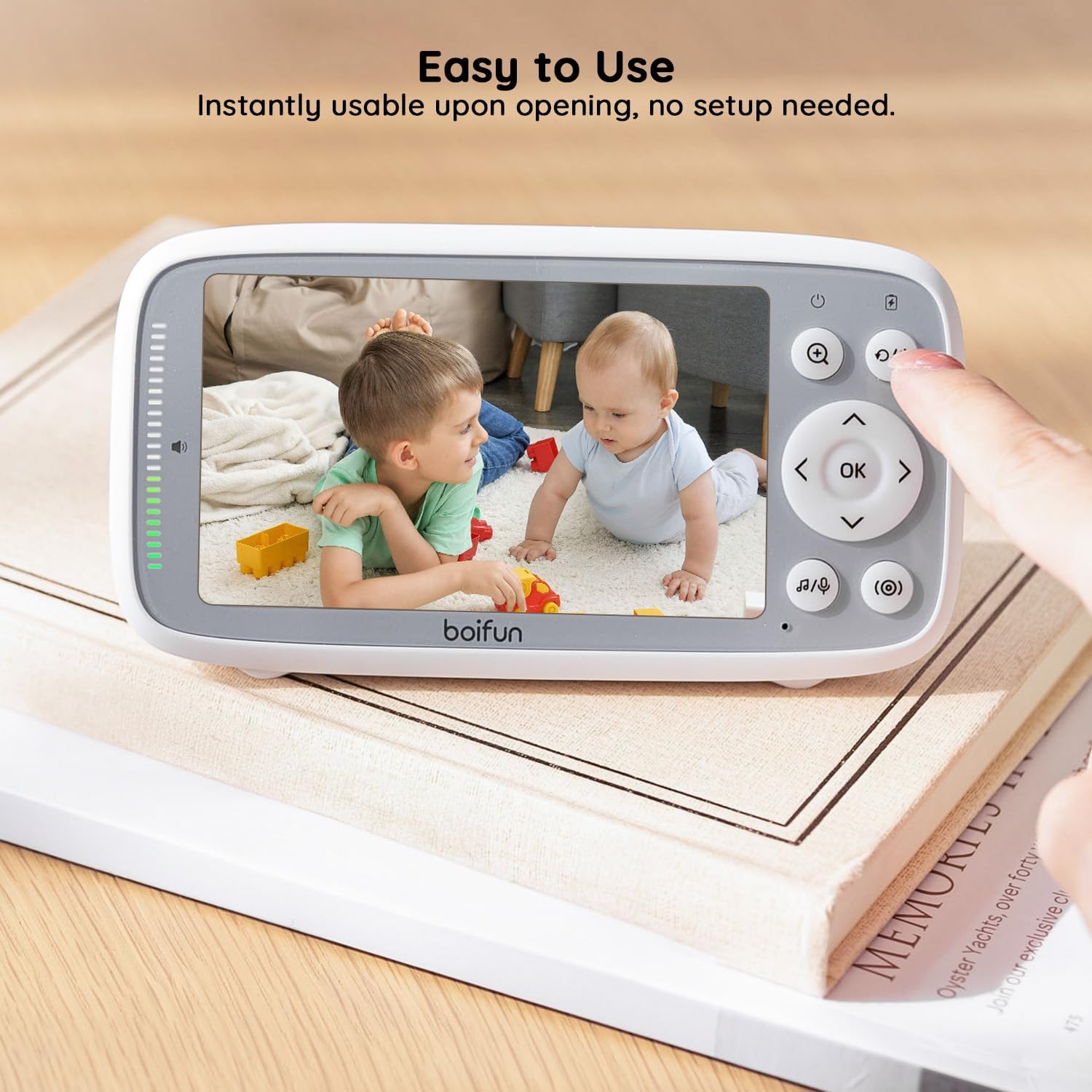 BOIFUN Baby Monitor No Wi-Fi, 4'' 3X Zoom Display, Video Baby Monitor Camera, IPS 720p Wireless (Moniteur Bรฉbรฉ), Easy to Use and Set Up, VOX Sound Detection, Invisible Infrared Night Vision
