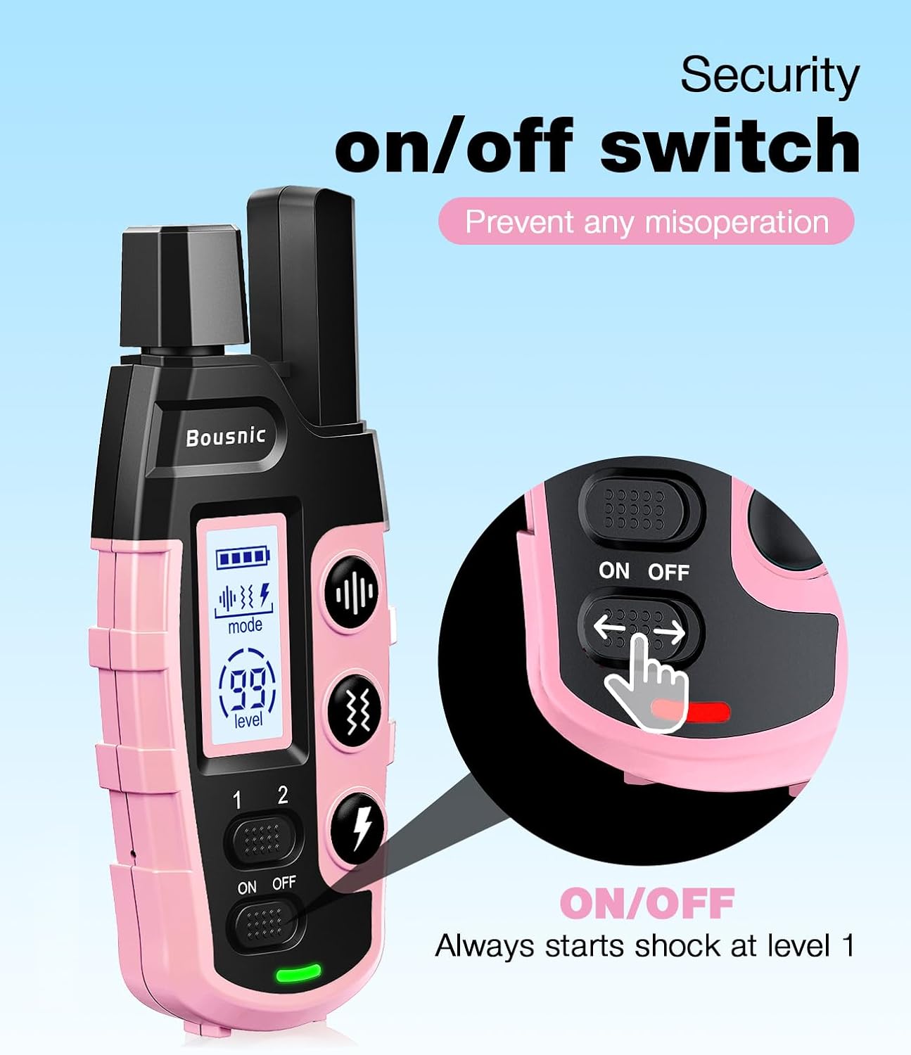 Fits for All Sizes of Dogs 5-120lbs: Bousnic training collar for dogs is ideal to control dogs as small as 5 pounds and as big as 120 pounds. Instant response security on/off switch button allows you to carry it without any fear of accidental touch.