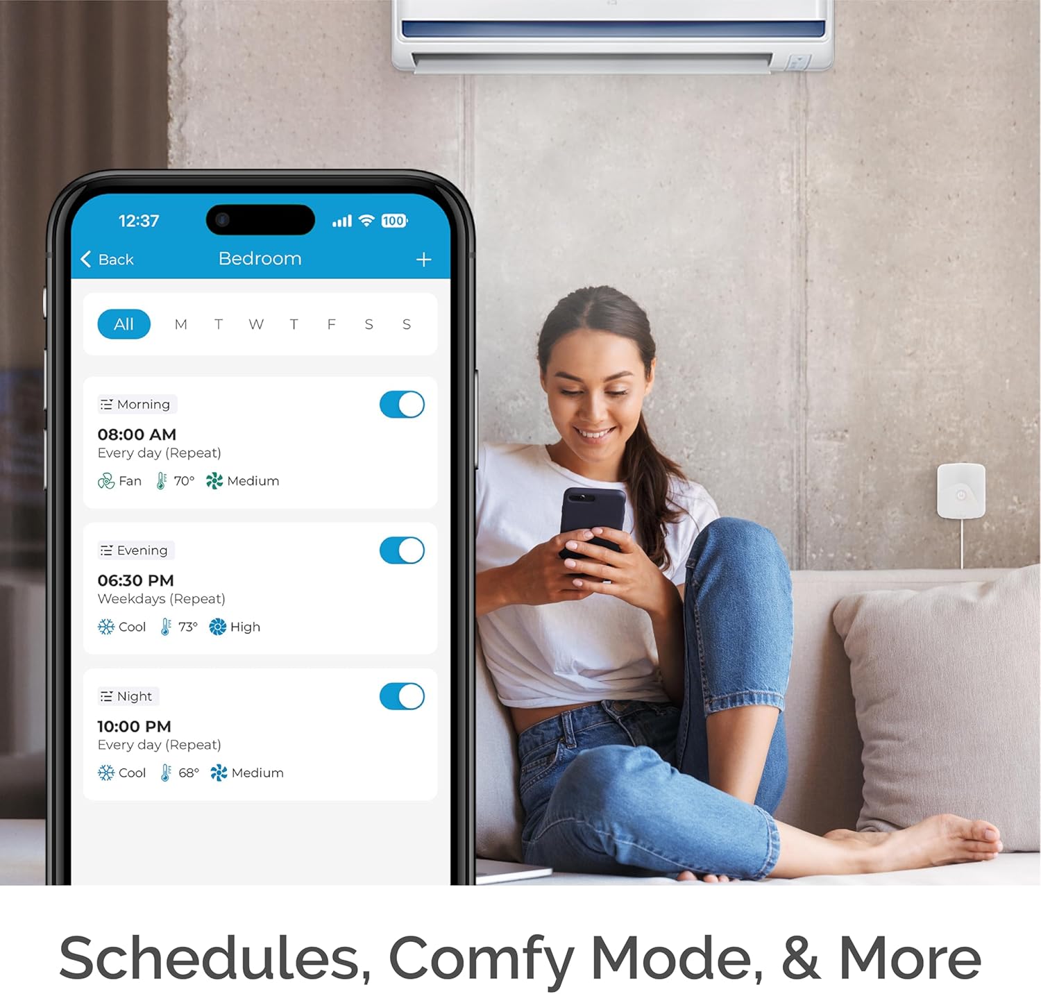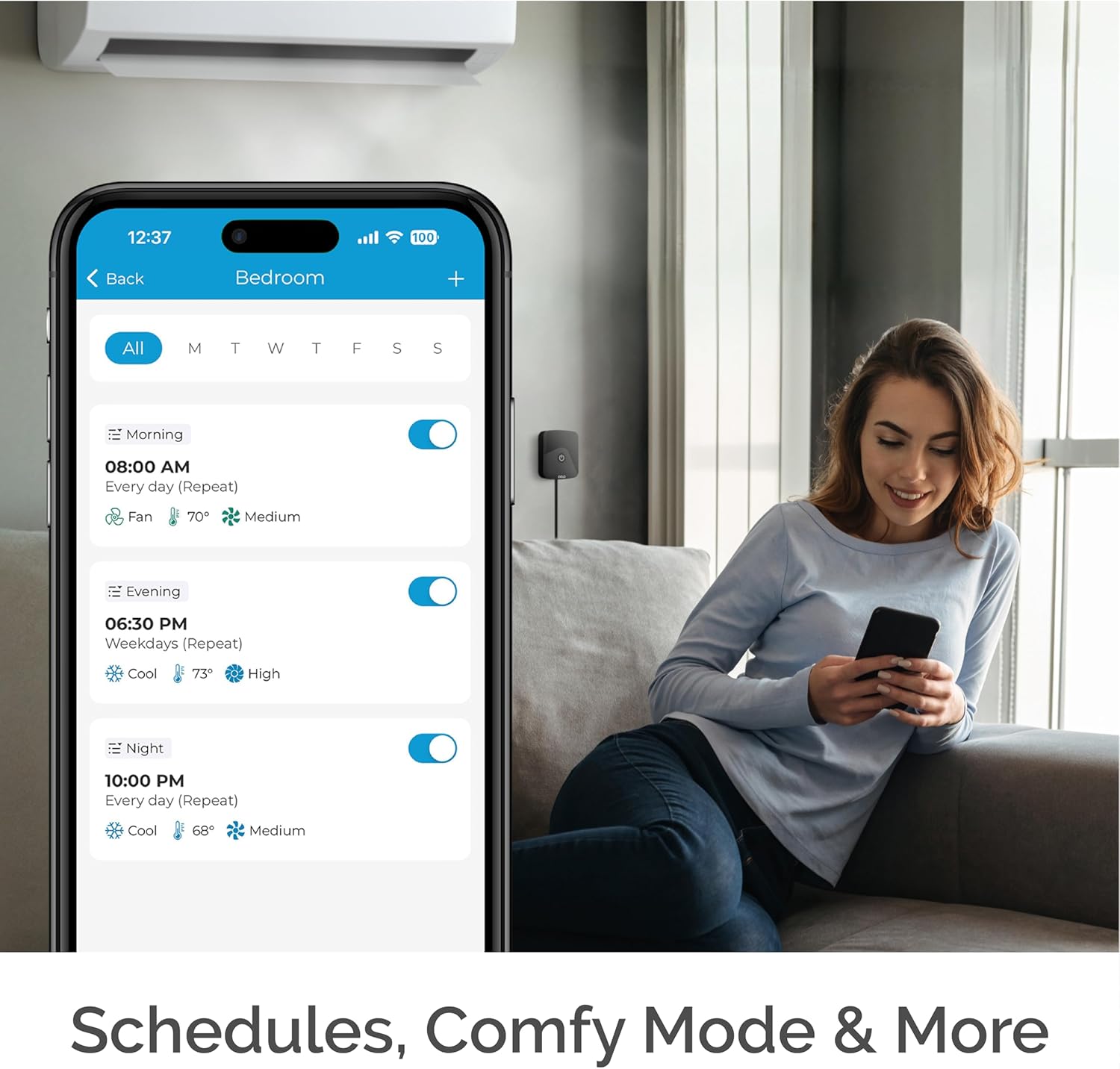 Breez Eco | Smart AC Controller for Mini Split, Window, Portable ACS | WiFi, Alexa, Google, Siri Shortcuts, SmartThings, IFTTT, Free App, NO Subscriptions | Schedules, Geofencing, Comfy (Black)