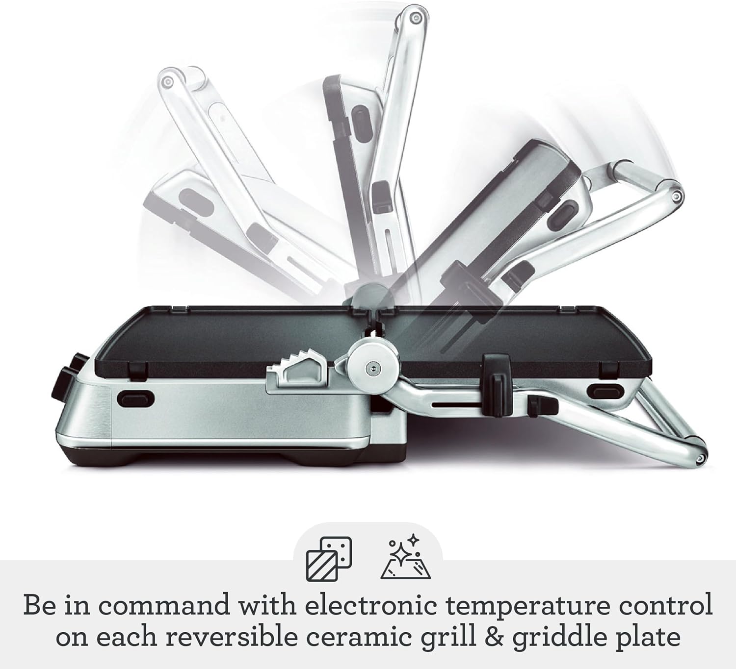 THREE FLEXIBLE SETTINGS: Breville grill offers three distinct settings to extend the capabilities of your appliance; Access a practical panini press with Panini mode, a precise hamburger cooker with Burger, and add delicious sear to your meal with Sear
