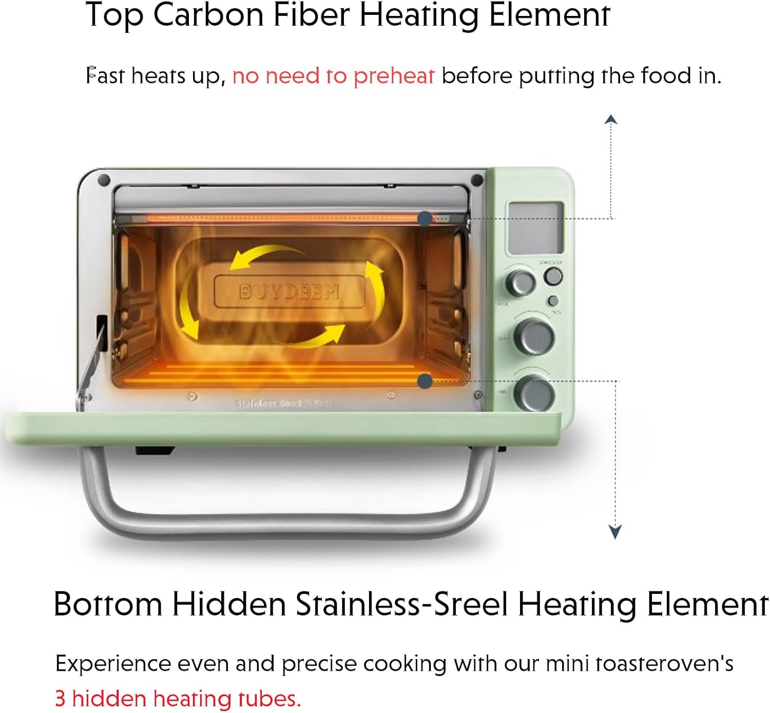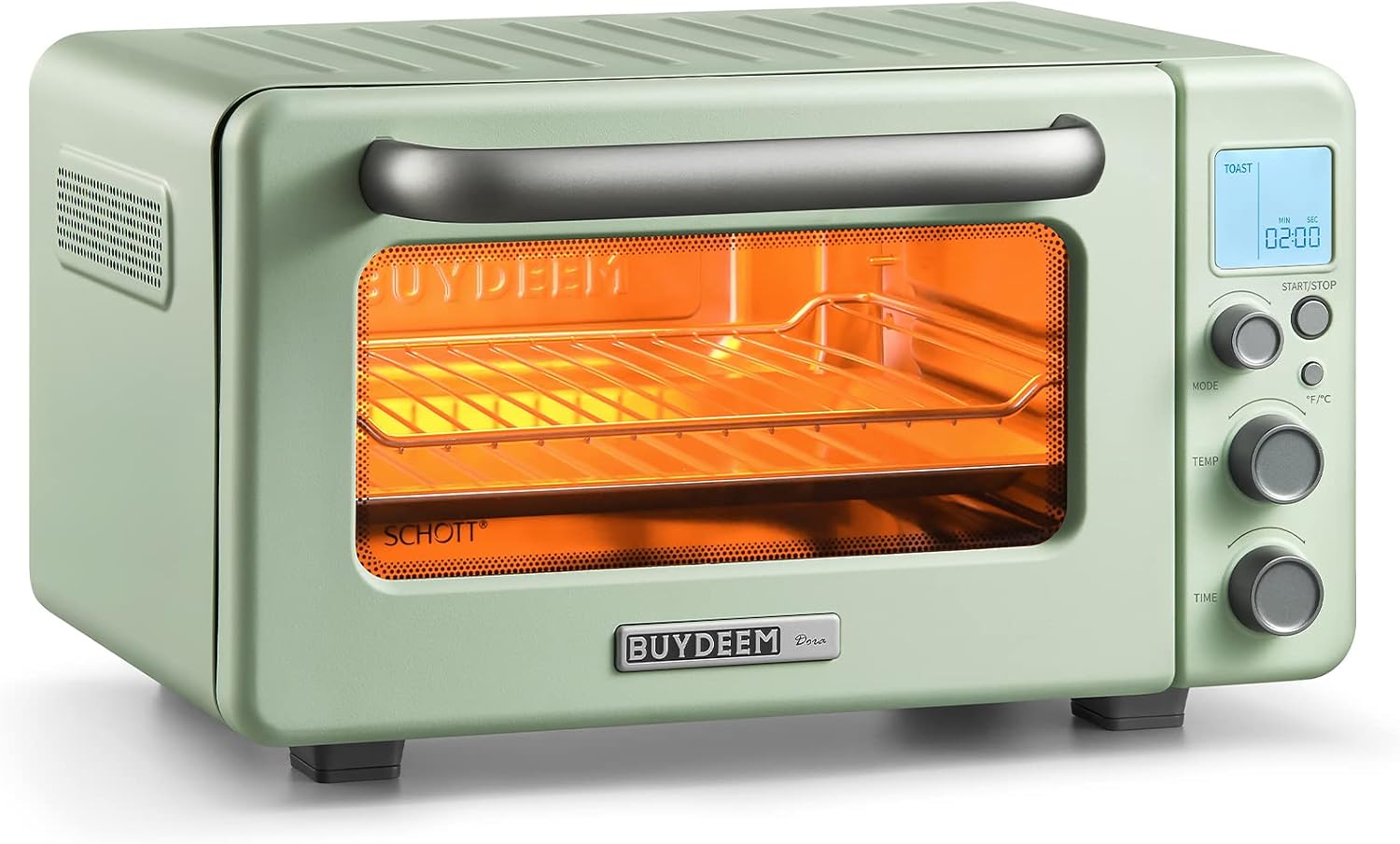 BUYDEEM T103 Multifunction Toaster Oven, No Pre-Heat Needed, 12QT 7-in-1 Mini Smart Digital Toaster Oven with Grill Rack and Baking Tray, 1600W (Cozy Greenish)