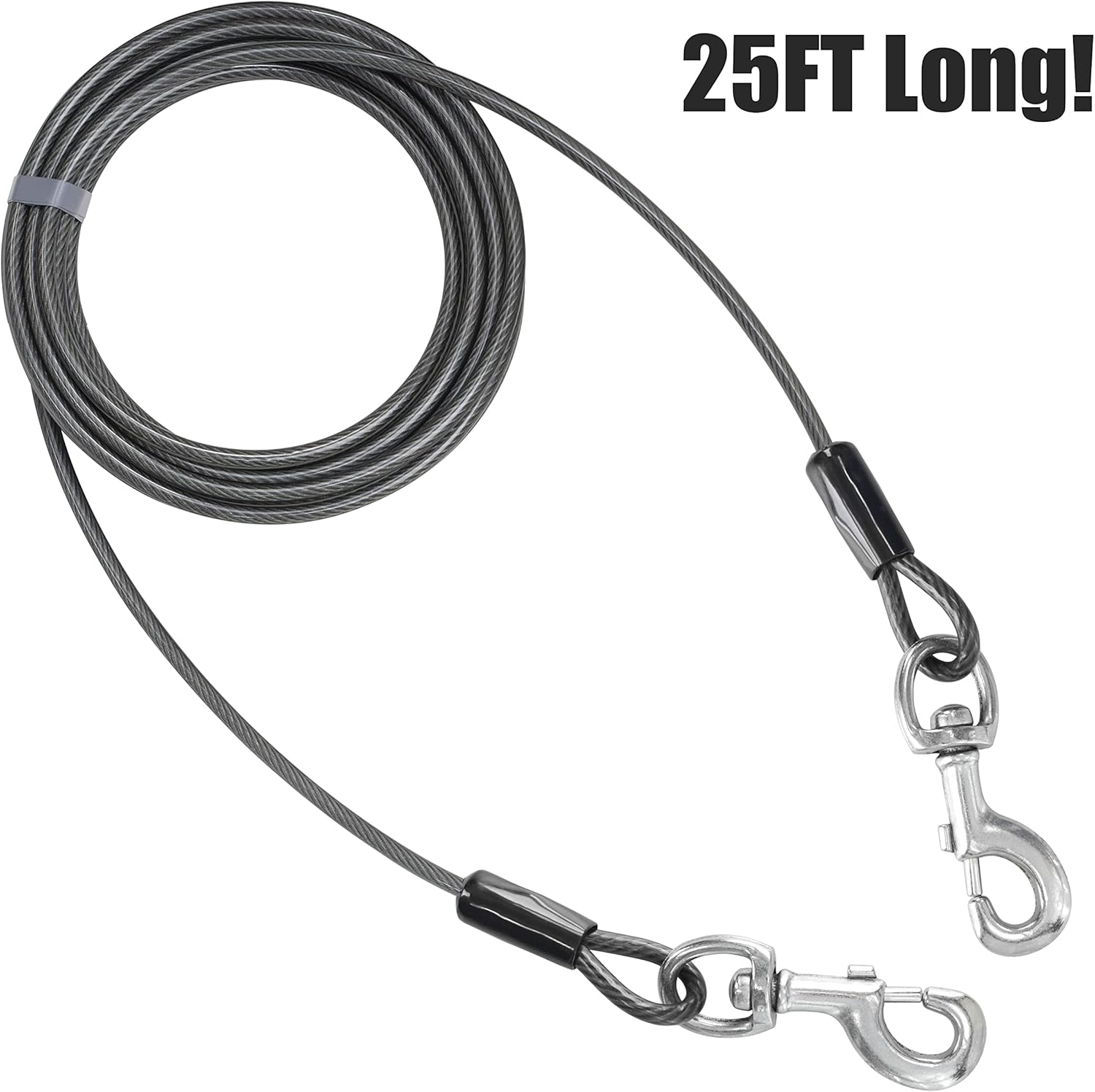 • 25-feet, lightweight and ultra-strong tie-out cable for dogs up to 35 lbs.