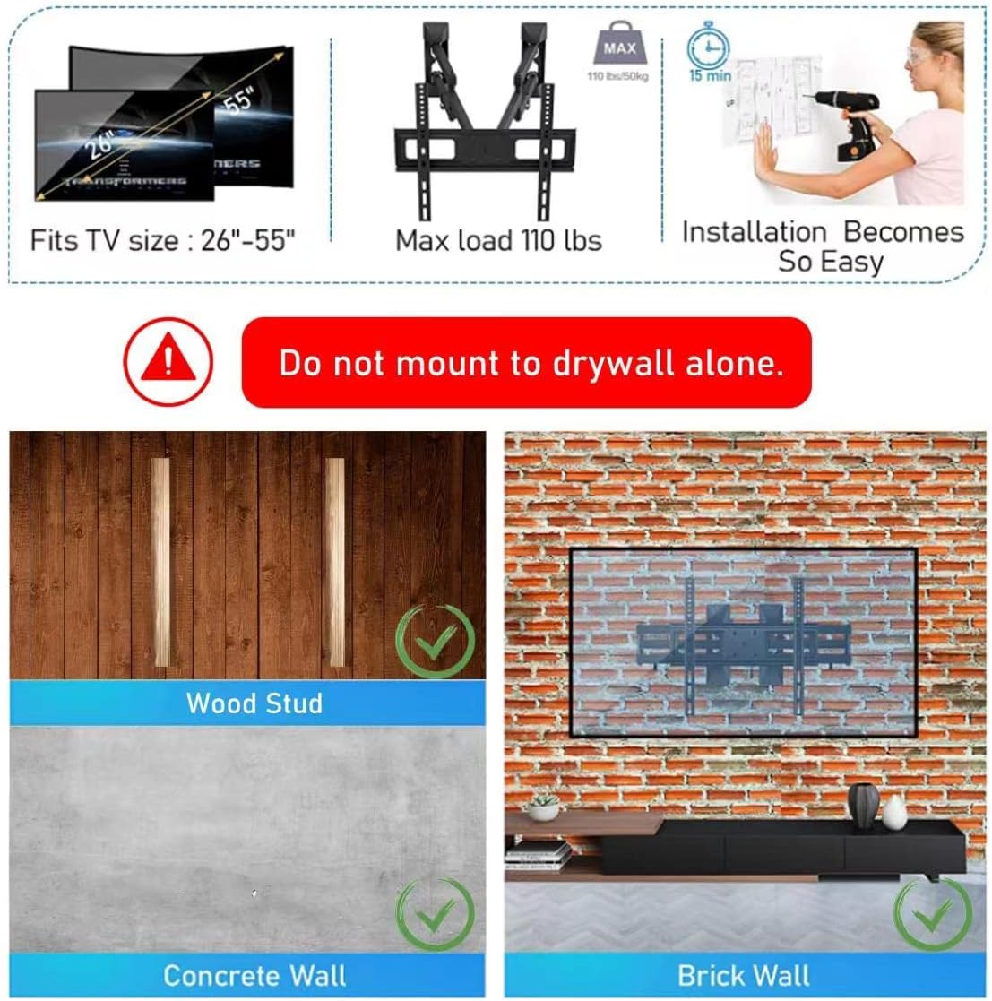- C-MOUNTS Tilting TV Wall Mount Bracket Low Profile for Most 26-65 inch Flat ScreenCurved TVs, Monitor, TV Mount with Max VESA 400x400mm Weight up to 110 lbs