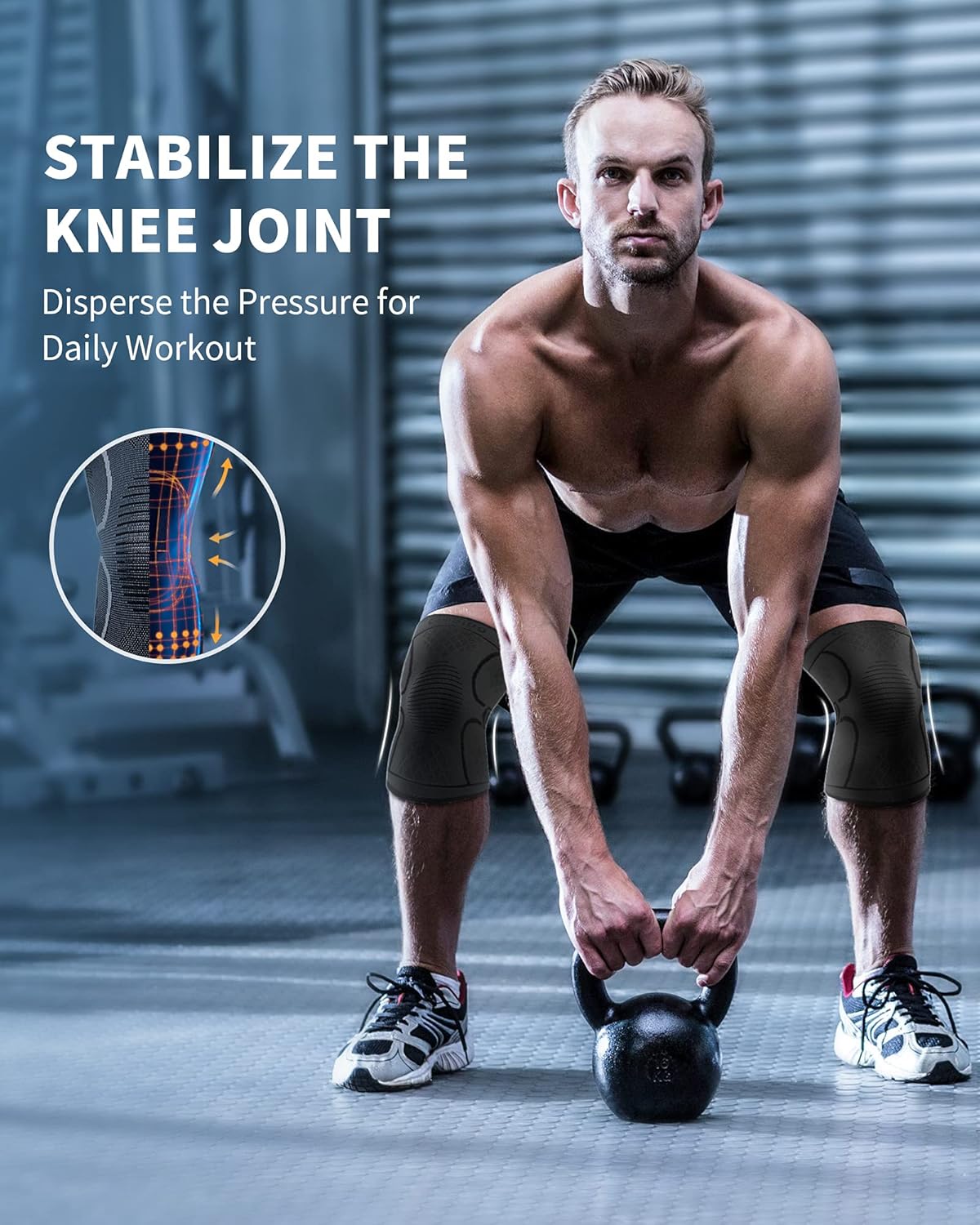 CAMBIVO Knee Brace Support(2 Pack), Knee Compression Sleeve for Running, Hiking, Basketball, Arthritis, Meniscus Tear, Knee Pain Relief and Injury Recovery