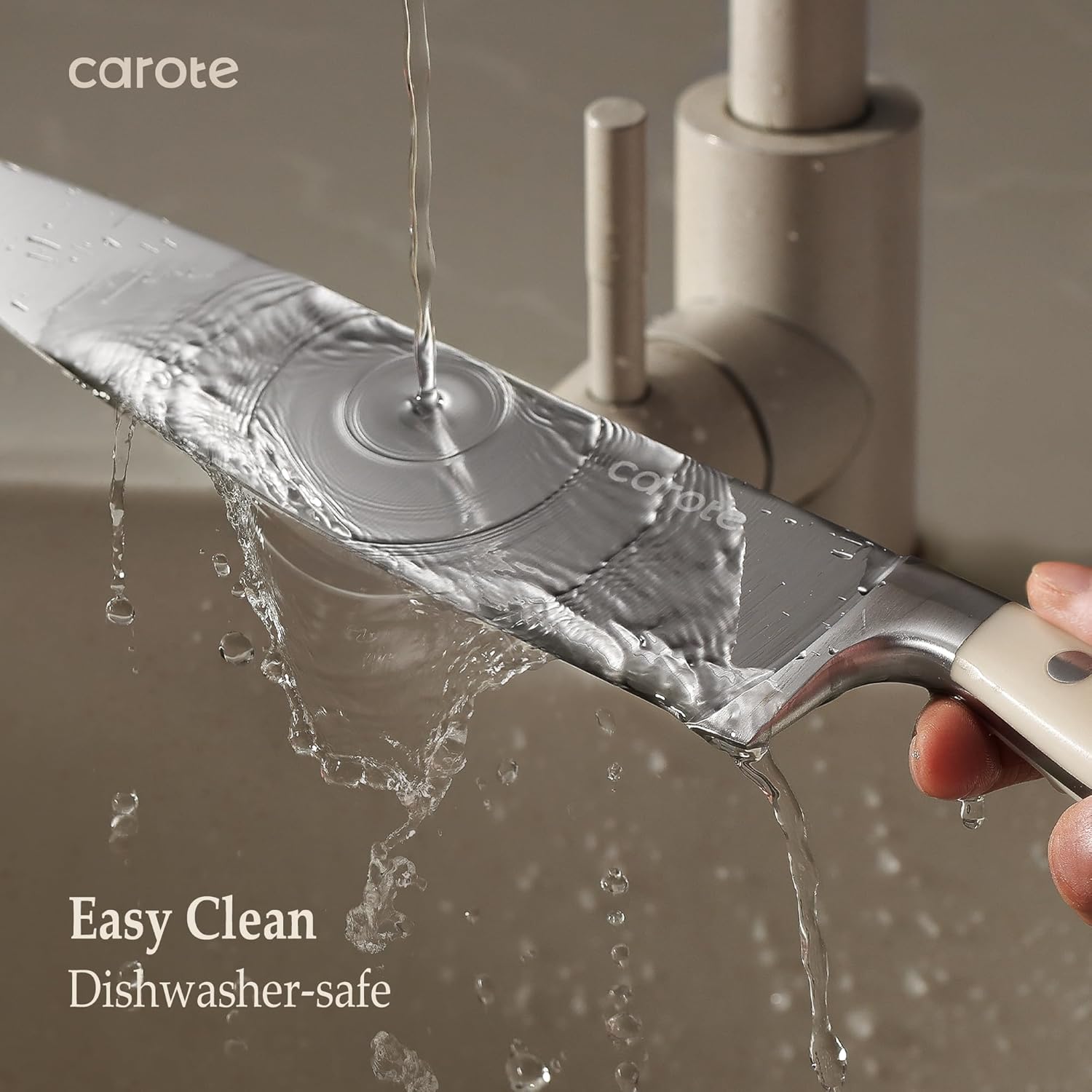 CAROTE Kitchen Knife Set features precision stainless-steel blades that resist stains and rust. Each knife is precision forged from a single piece of sturdy stainless steel for exceptional durability.