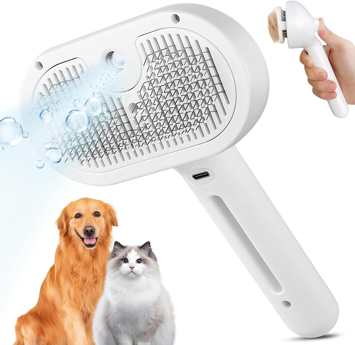 Caseeto Cat Brush for Shedding, 3 In 1 Cat Steam Brush Pet Brush for Shedding Pet Hair Cleaning Brush Comb Steamy Cat Brush Easily Removes Mats, Tangles, and Loose Fur