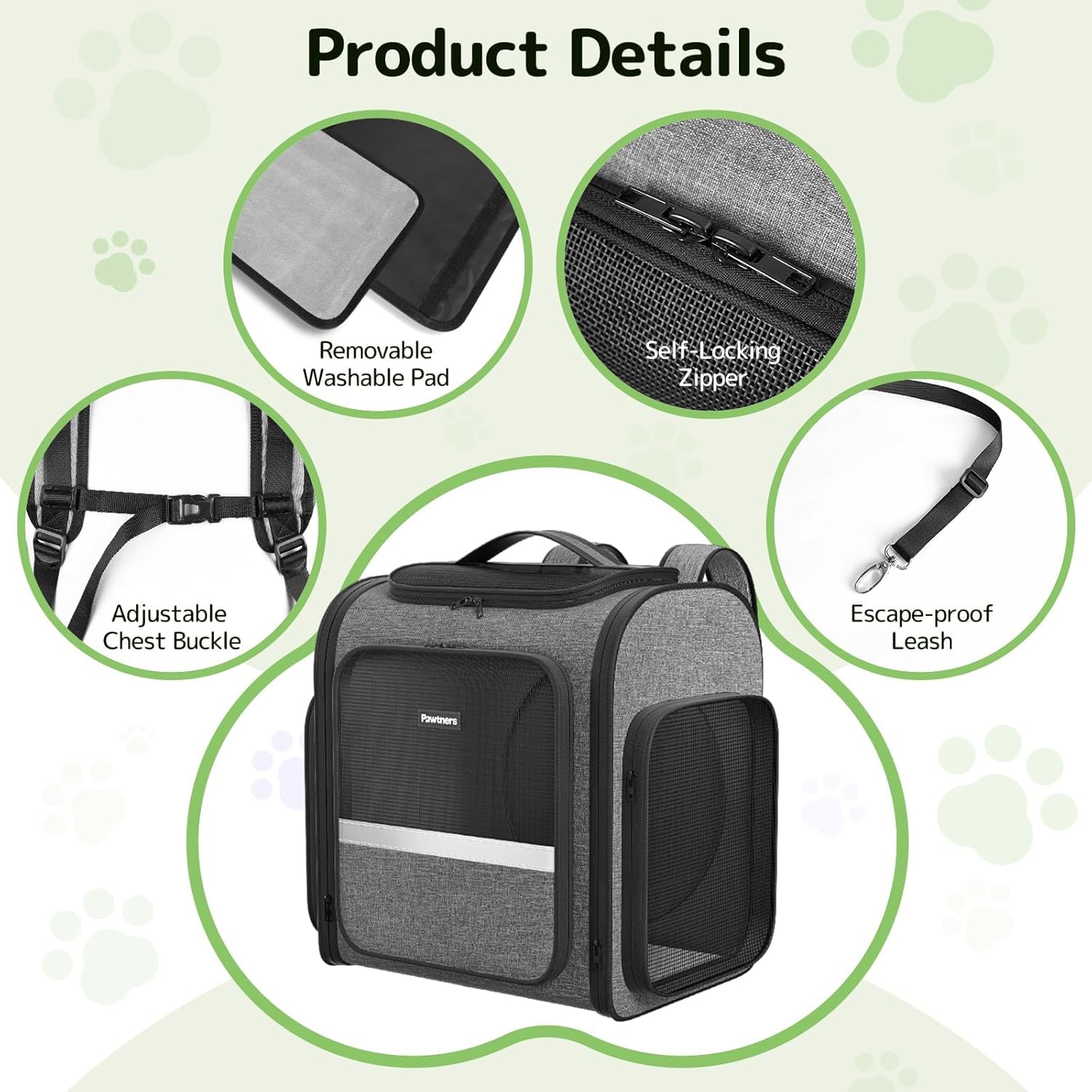 Cat Carrier Backpacks Pawtners Expandable Cat Backpack with Breathable Mesh, Pet Carrier Backpack for Cats Small Dogs Puppies Up to 25 LBS, Dog Carrier Backpack for Travel Hiking Camping Outdoor