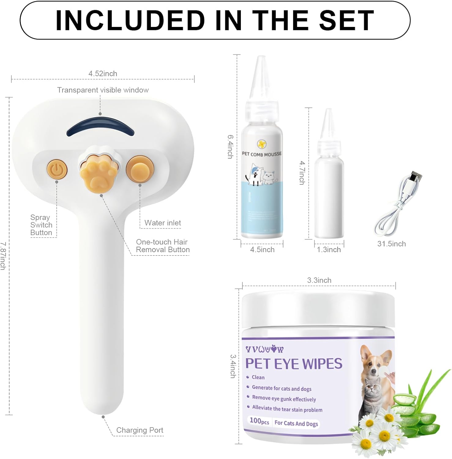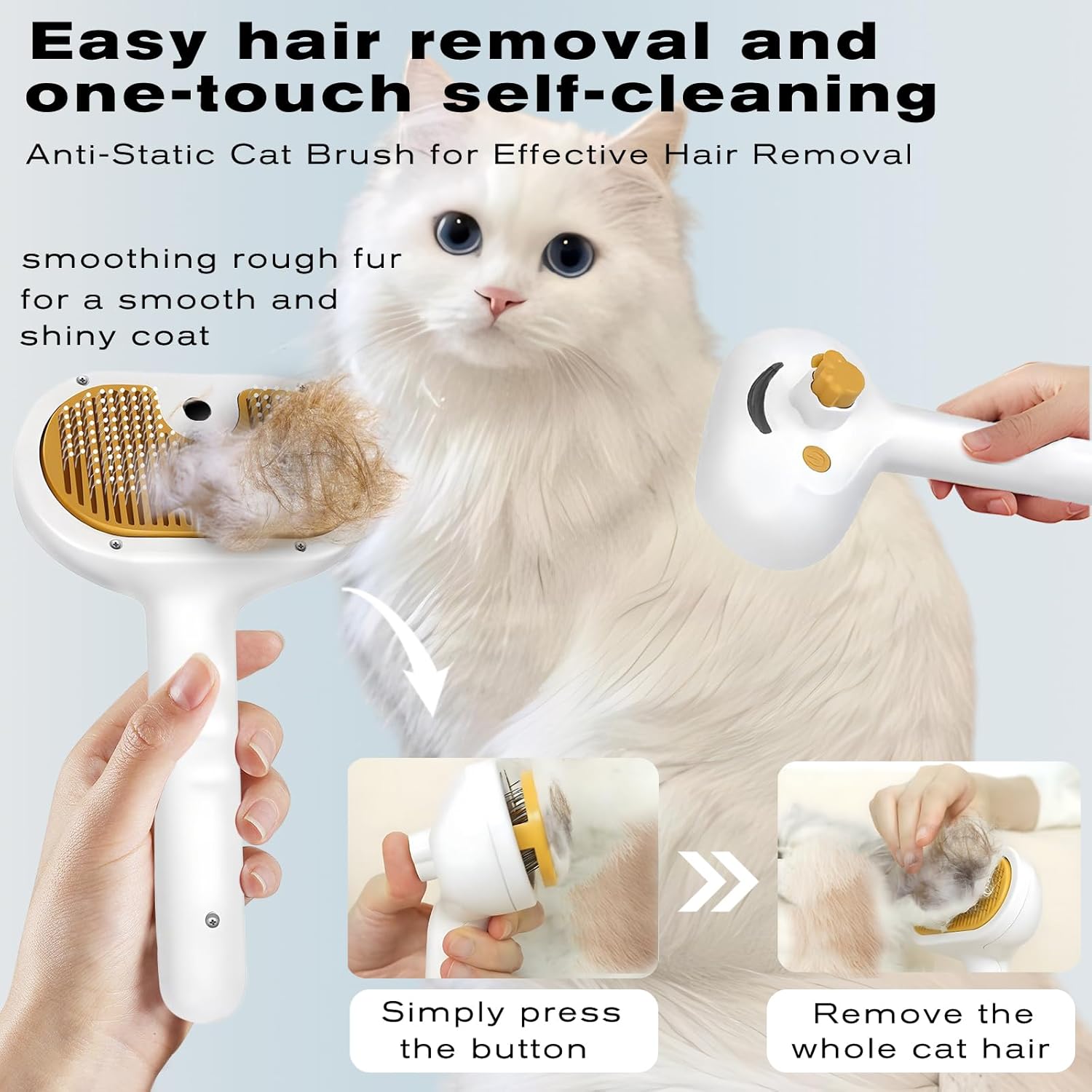 Cat Steam Brush for Dogs & Cats – 3-in-1 Pet Deshedding Tool for Long & Short Haired Pets, Grooming Shedding Brush-Contains shampoo