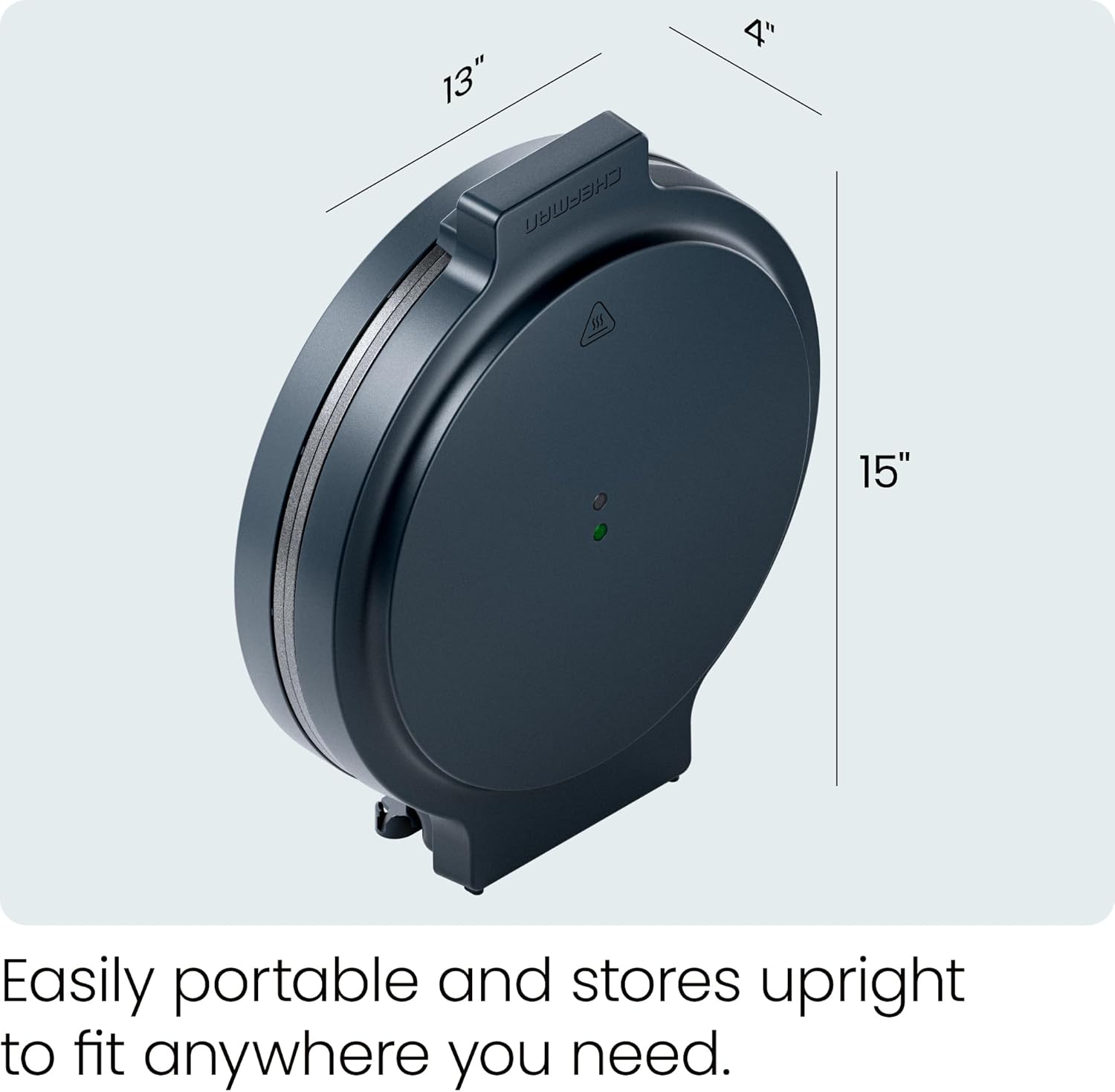 Make everything you want with the Chefman Pizza Maker. Created at the intersection of art and function, this one-stop appliance is perfect for making pizza, nachos, quesadillas, melts, and more—all while looking beautiful on the countertop. LED indicator lights show when the unit has power and is fully heated, reaching temperatures as high as 428°F. The large 12” nonstick cooking plates are big enough to fit a whole pizza and make cleaning up after dinner easy. When you’re done, fold this electric skillet with lid closed and store it upright to save space or take the portable griddle on the go! Your pizza maker comes with a digital cookbook including 15 chef-crafted recipes. Purchase includes a 5 year warranty from Chefman. For information on how to use your product, scroll down for a PDF User Guide. 1440W/120V – RJ58-EM-MIDNIGHT-CA