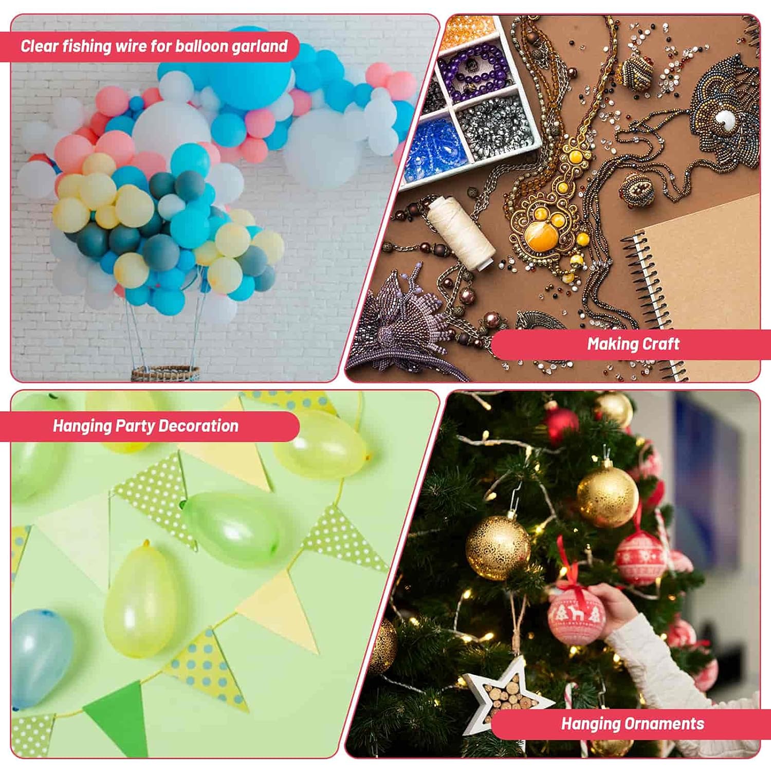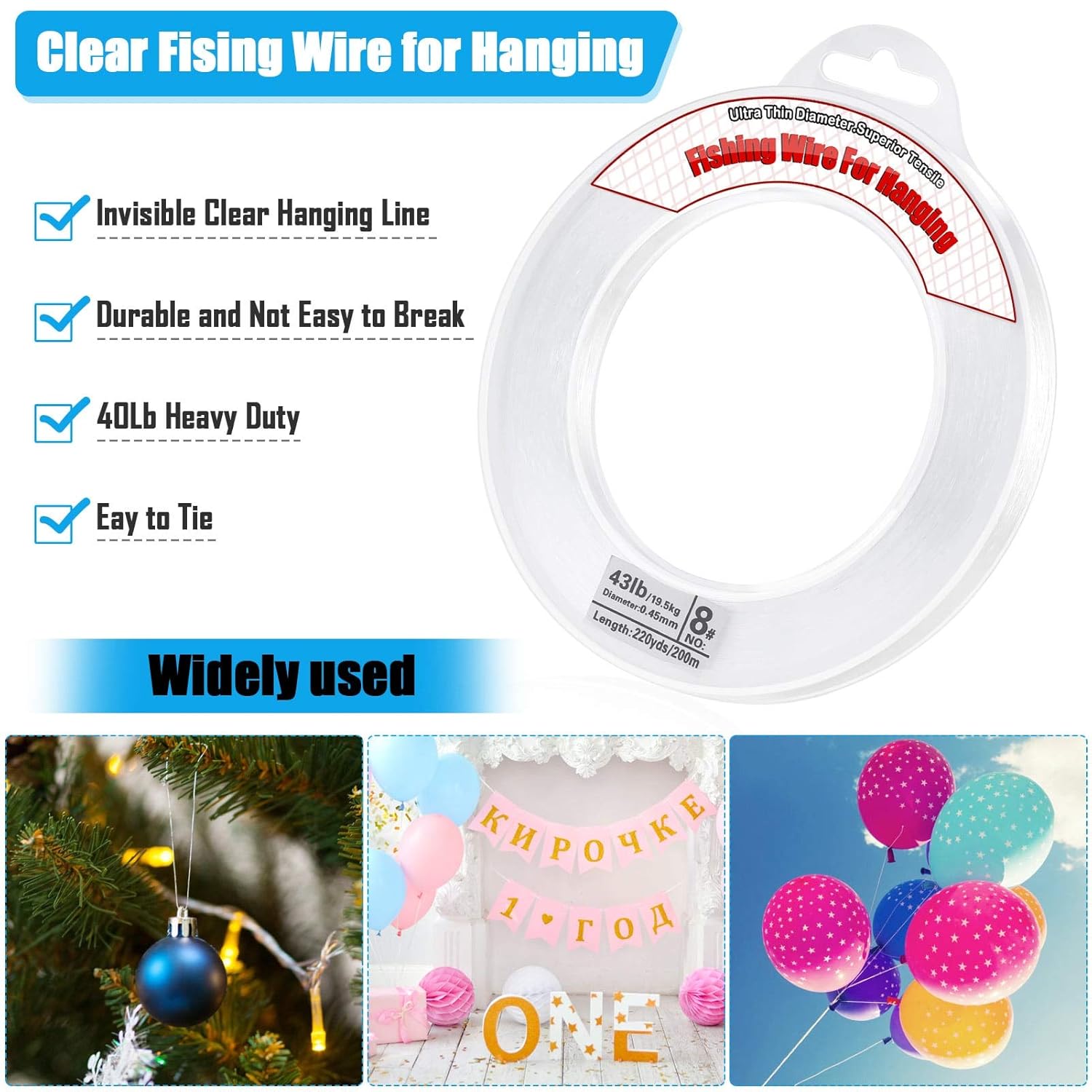 Clear Hanging Wire – This fishing wire for balloons is thin and transparent, invisible in direct light or against a white background. Perfect for hanging balloons, garlands, party decorations, hang ornaments and more