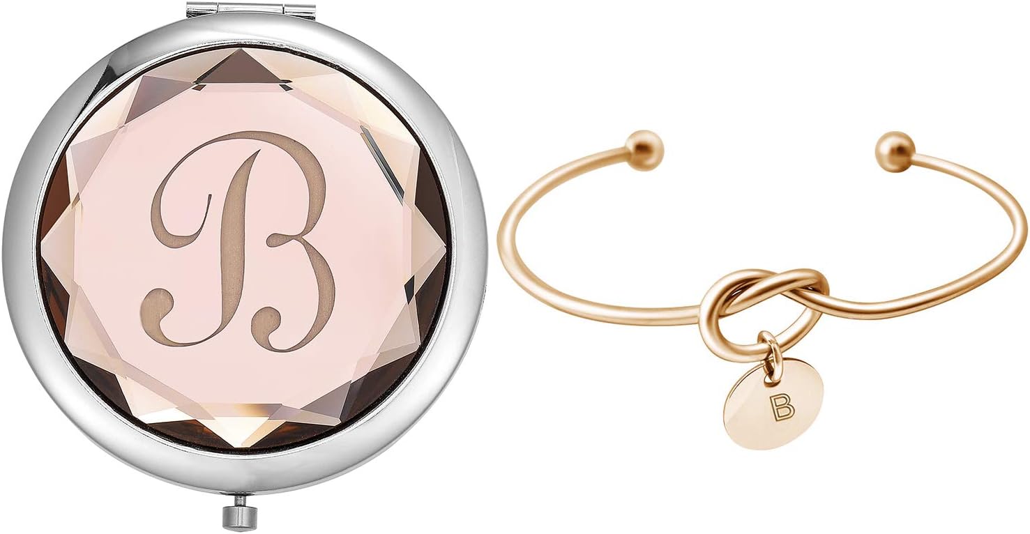 • ❤【Awesome Gifts for Bridal Party】:1pcs Letter "B" Crystal Mirror and 1pcs Letter "B" rose gold love knot bracelet ,comes with beautiful gift box, is ready for giving.Delicate, meaningful, perfect bridesmaid proposal gifts.