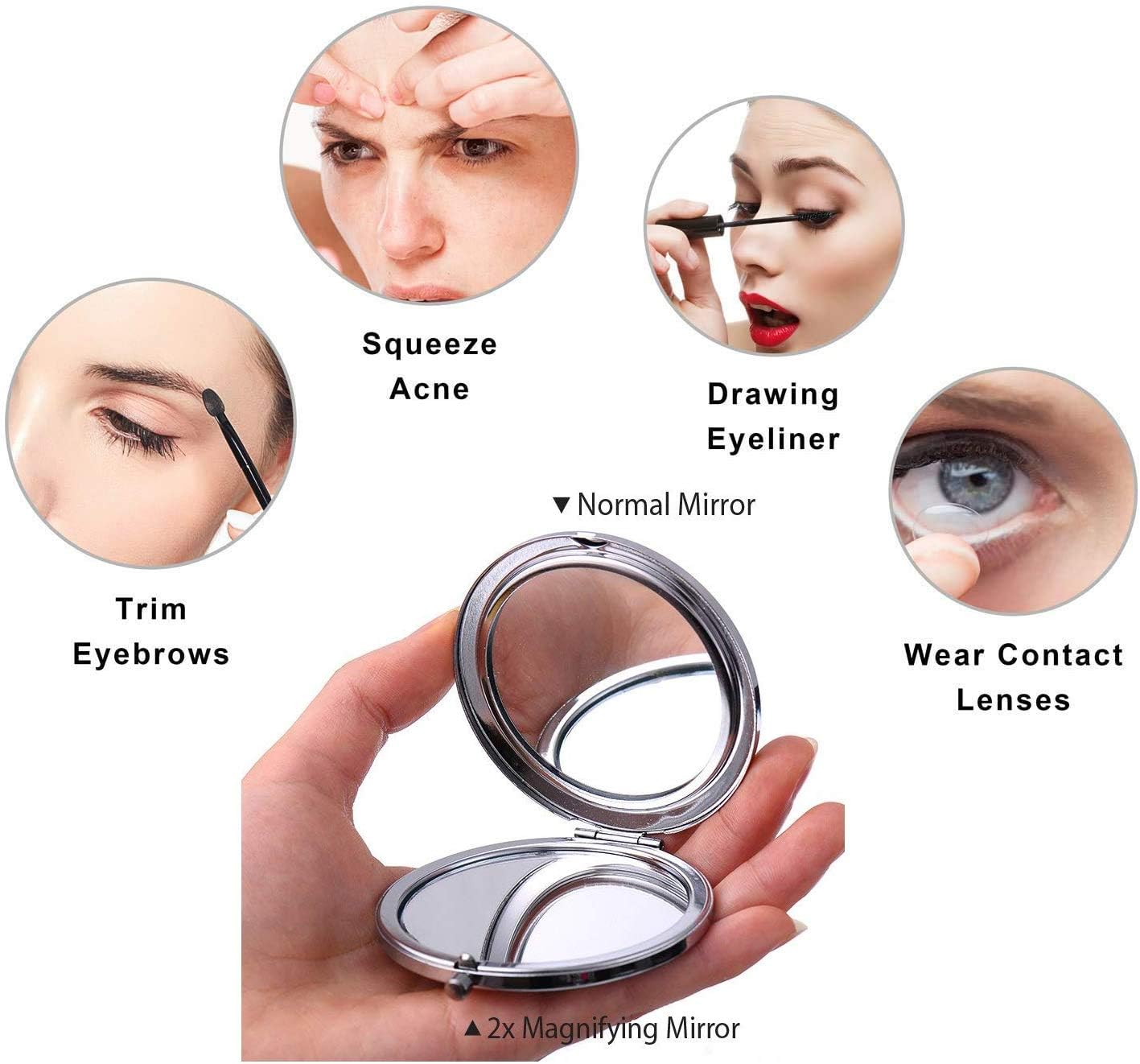 • ❤【Mirror Suitable Size】:2.75 inch;thickness:0.6 inch. Double side mirror meet all you need for cosmetic usage.1× side shows crystal clear reflection; 2× magnification side provides an exceptionally clear image without distortion, help you make sure that your lipstick, eyeliner and hair are in perfect condition.Portable design is easy to carry around,It is suitable for daily use.