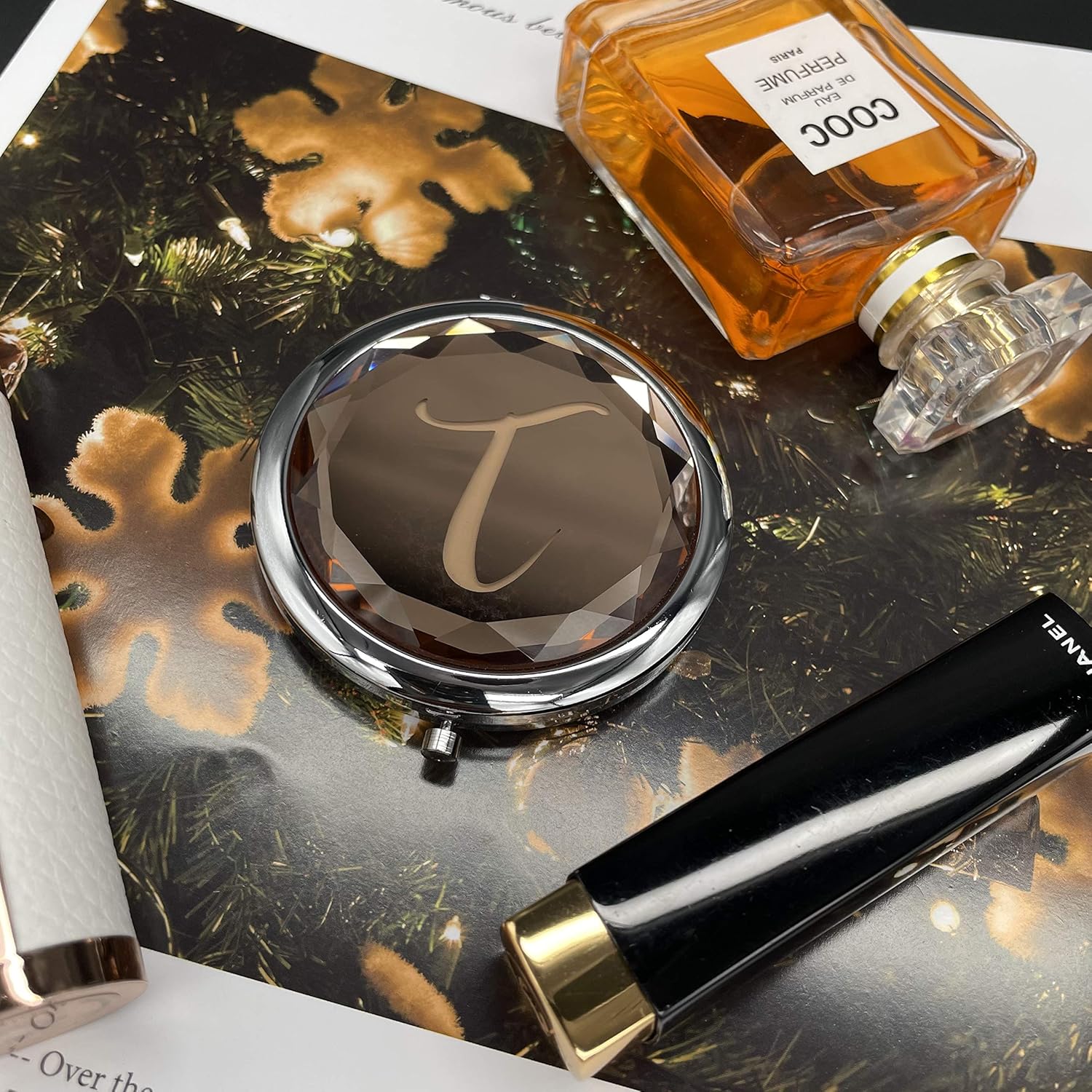 Compact Crystal Pocket Makeup Mirrors Set - Letter Mirror and Love Knot Bracelets for Bachelorette Party, Bridesmaid Proposal, Wedding Gifts (Champagne-B)