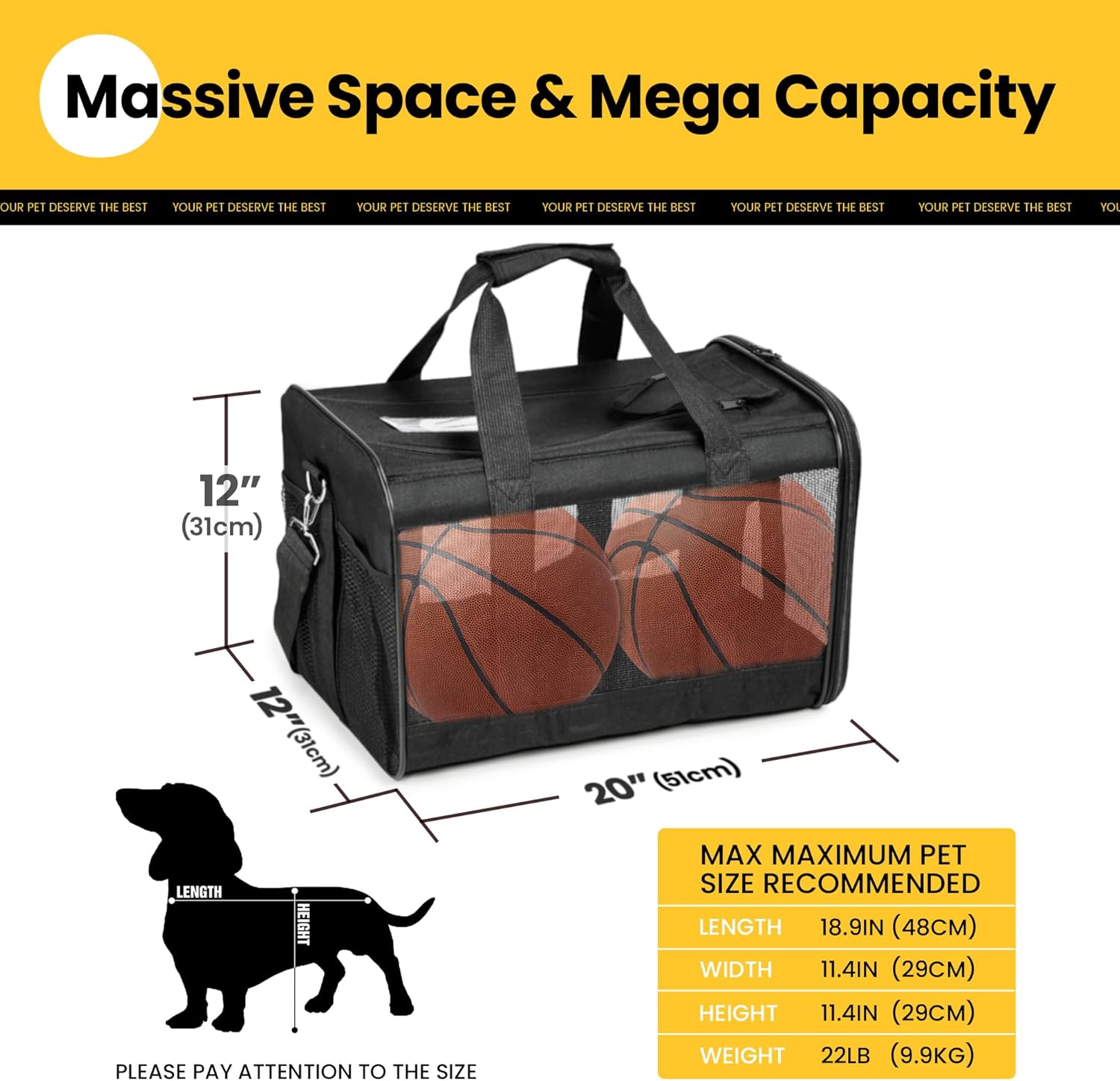 Conlun Cat Carrier Airline Approved, Soft-Sided Dog Carrier with Inner Safety Leash, Pet Transport Carrier for Small-Medium Cats Puppies up to 15 Lbs, Collapsible Travel Kitten Carrier Bag -Black M
