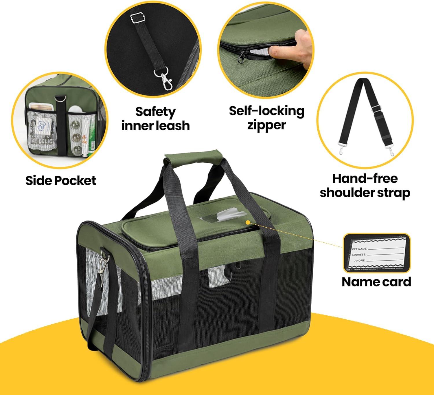 - BREATHABLE & CONVENIENT:The cat carriers with an openable top and three-sided mesh windows provide fresh air and a view, reducing pet anxiety and keeping them comfortable. External pockets allow easy storage of food, leashes, bags, and other pet essentials.