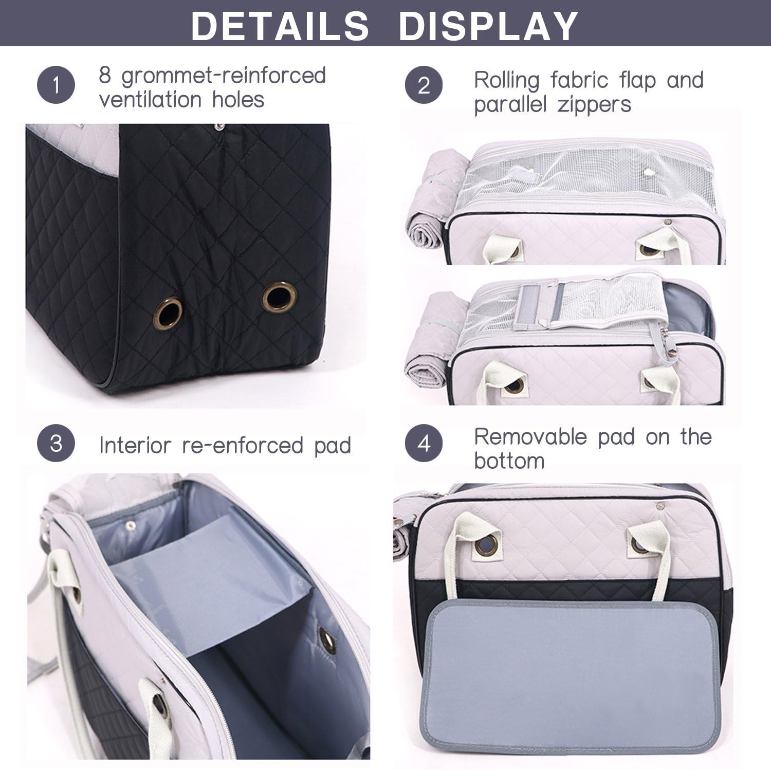 • <b>Ventilation</b>: A plastic-mesh flap on the top along with 8 grommet-reinforced ventilation holes can keep your pet comfortable through any journey
