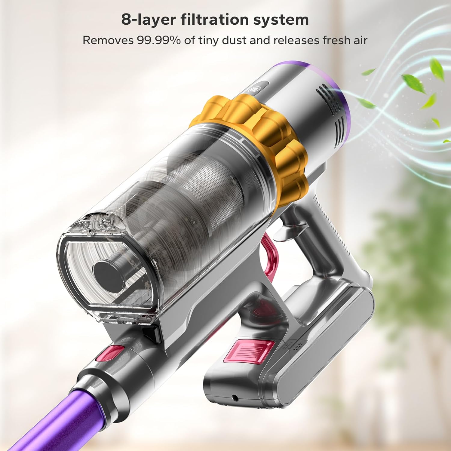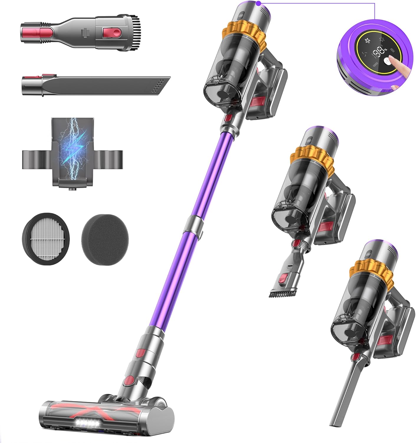 Cordless Vacuum Cleaner, 550W/45Kpa/70Mins Vacuum Cleaners with LED Screen, Wall Mount Charging, 1.6L Dust Cup, Anti-Tangle Cordless Vacuums, Rechargeable Stick Vacuum for Pet Hair/Carpet/Hard FloorPL17-B0D86ZMWPF