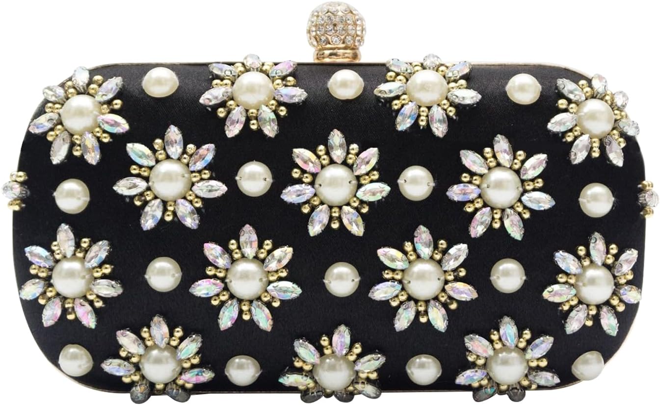 ✿Chic Design--Our whole bag is made of rhinestones and beads, which makes the whole bag stylish, honorable and generous. Rhinestone pearl clutch bag with gold metal frame, rhinestone buckle design, showing a charming and noble temperament. No matter you hold the evening clutch bag in hand, or wearing it on shoulder by detachable chain, it goes well with your evening dress, t-shirt, jeans, gown, sequins skirt, high heels, etc.