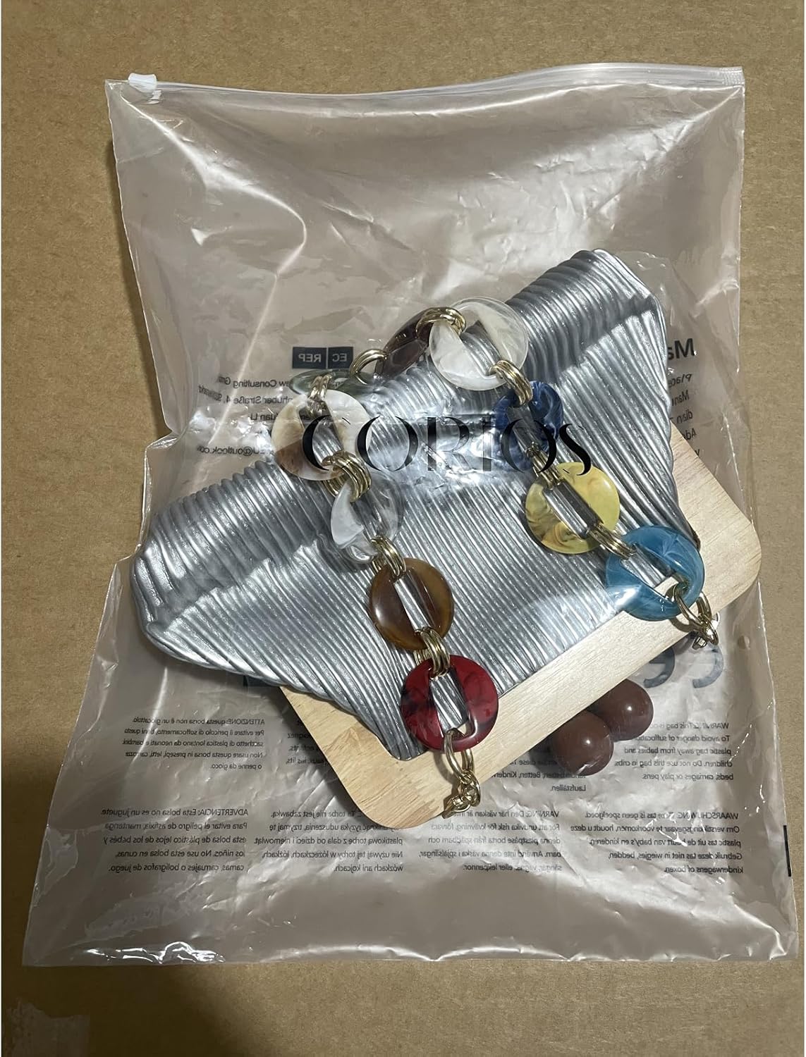 CORIOS Women Evening Bag Pleated Clutch Bag Wooden Beads Handbag Bridal Wedding Purse Elegant PU Leather Shoulder Bag