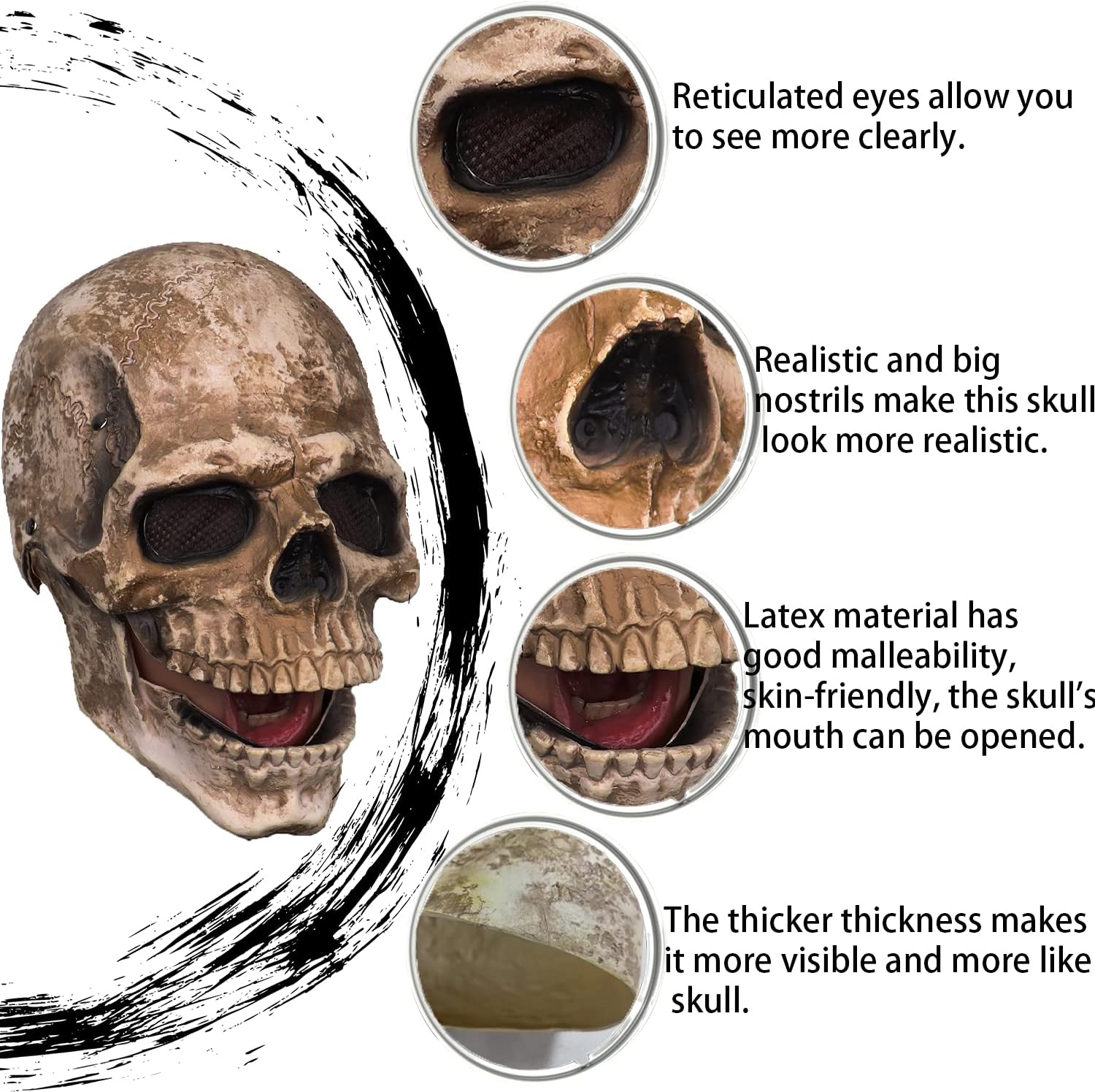 • [💀💀 Realistic Movable Jaw Design] - This skull mask is with movable creepy jaw design. After wearing it, you can imitate the speech of the skull. Make you the most realistic skeleton in the dress up party.