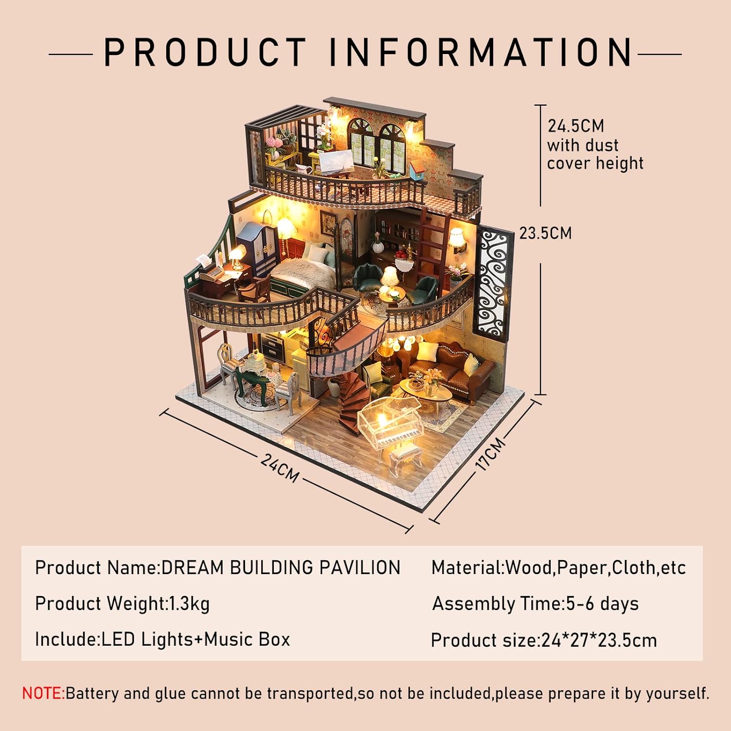 💖【Warm Tips】: mini dollhouse kit the glue and batteries are not included in the package as they are prohibited from being shipped by air. You need to prepare the glue and battery yourself. and prepare a set of auxiliary tools, such as glue, scissors, small knife, screw driver, precision tweezers, ruler and so on.If you have any other questions, please contact our customer service via email. Thank you for your support!.