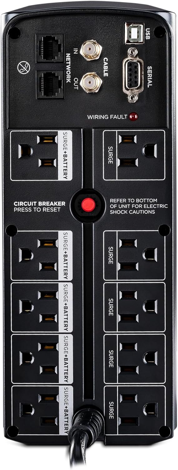 685VA/390W AVR Battery Backup Uninterruptible Power Supply (UPS) System uses simulated sine wave technology to safeguard desktop computers, workstations, networking devices, and home entertainment equipment