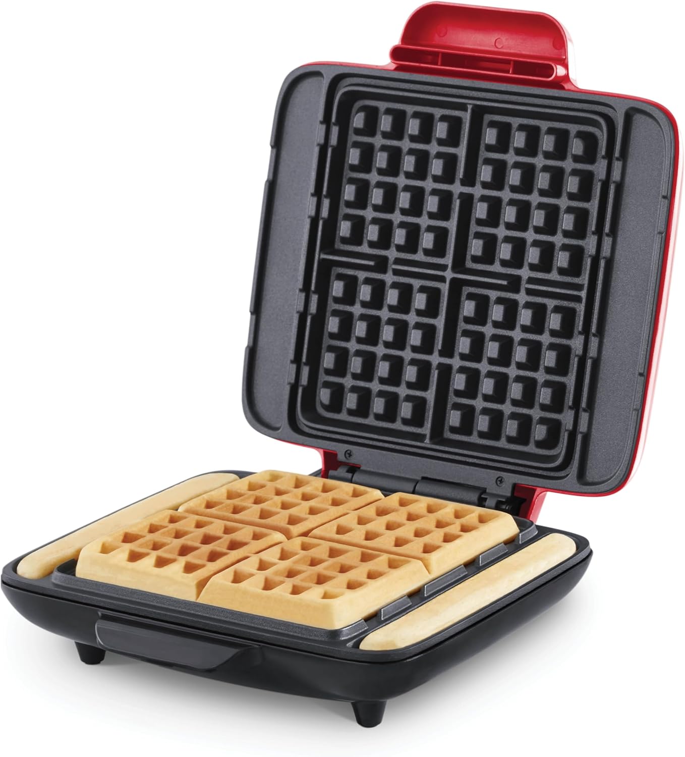 DASH No-Drip Waffle Maker - Four Waffle Molds, Nonstick Waffle Iron with Quick Heat-Up, Nonstick Surface - Perfect Waffle Maker for Kids and Families, Just Add Batter