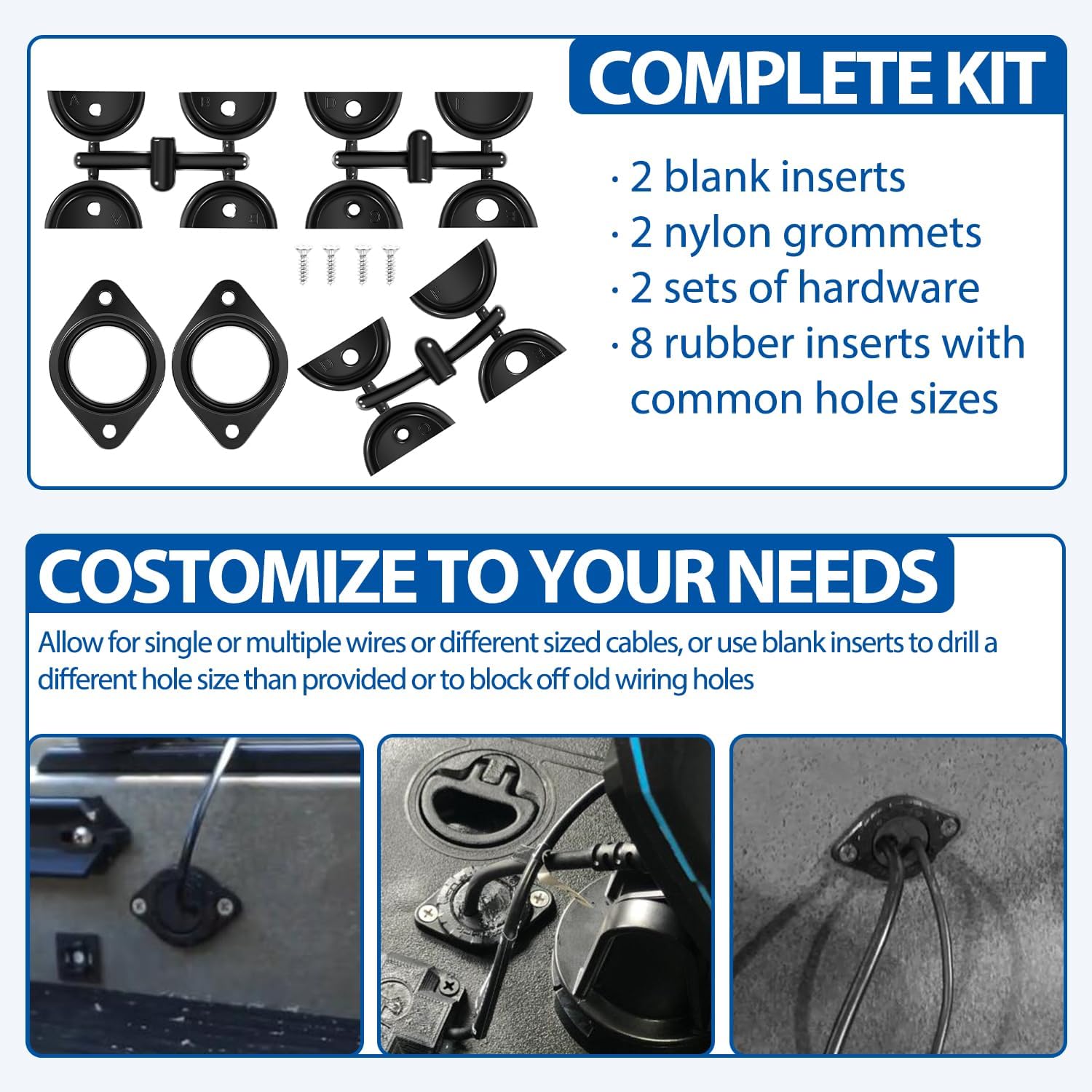 COSTOMIZE TO YOU NEEDS - Allow for single or multiple wires or different sized cables, or use blank inserts to drill a different hole size than provided or to block off old wiring holes. Kayak cable glands allow you to hide your cables inside the hull for less clutter and a great look