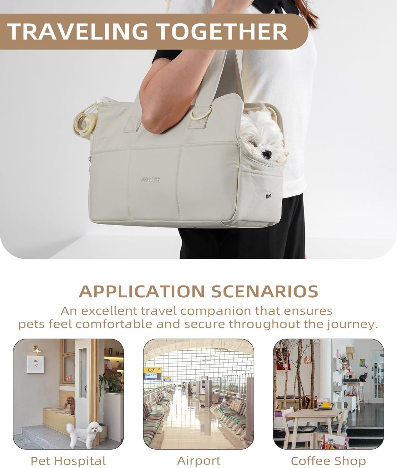 Dog Purse Carrier for Small Dogs Rabbit cat with Large Pockets, Cotton Bag, Dog Carrier Soft Sided, Collapsible Travel Puppy Carrier (Grey, 13.6" L x 6.5" W x 10" H)