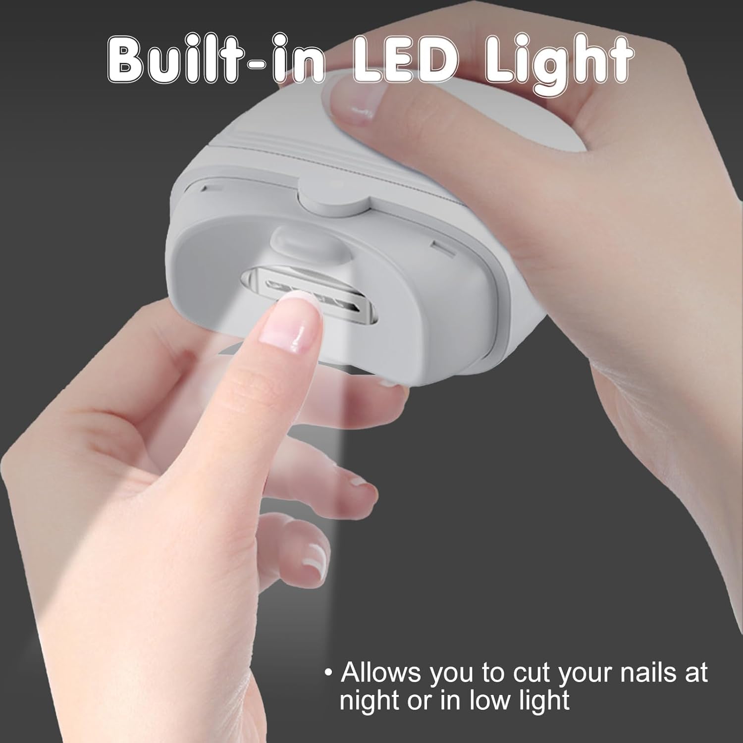 【Electric safety】 This electric nail clipper is 100% safe. The clipper-blade is hidden behind a notch that protects the finger. Automatic nail trimmer is perfectly safe when your fingers are in direct contact with the nail groove. The nail clipper night-Light design is suitable for old people with poor eyesight.