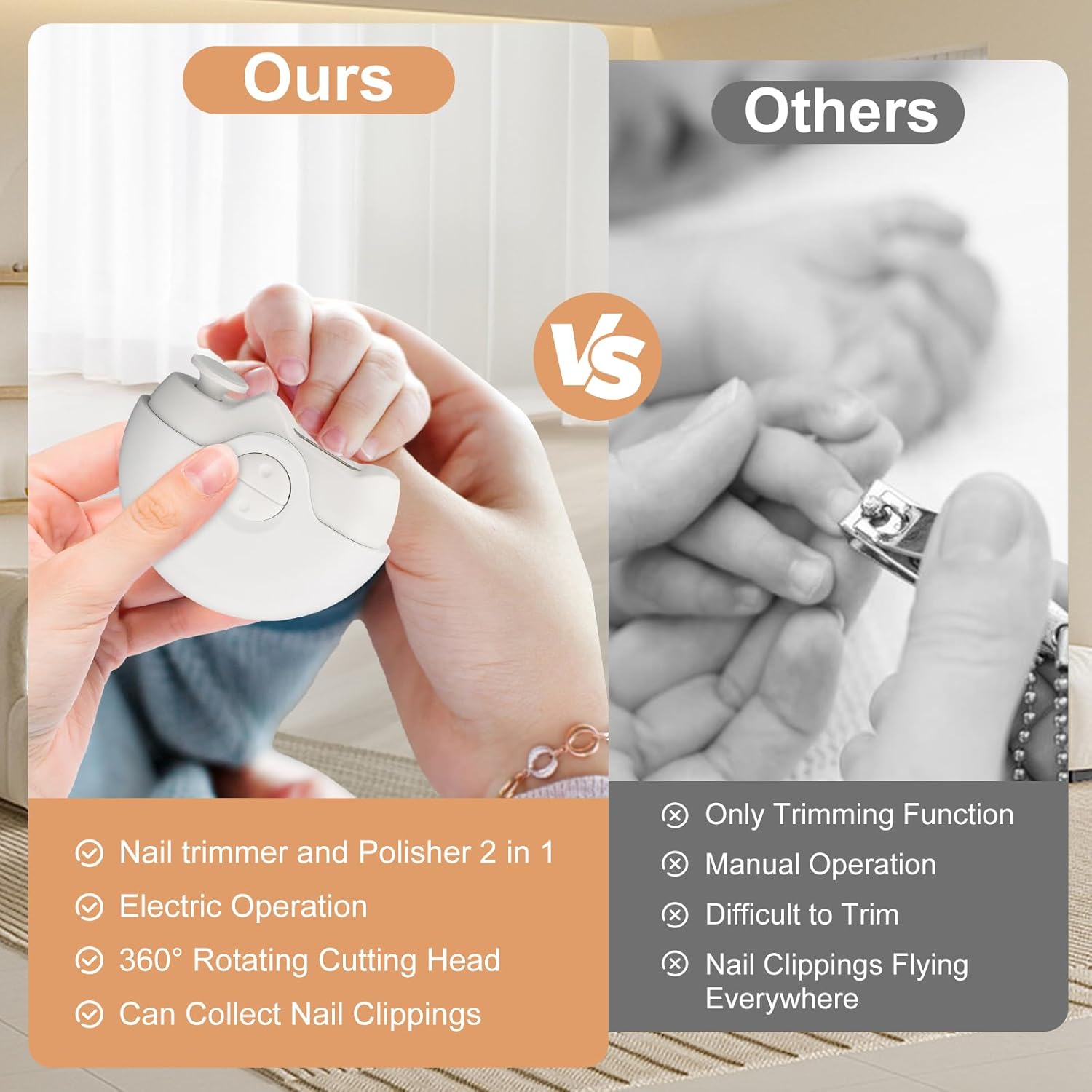 5. 2 in 1 Nail Clipper: Electric nail clipper has 2 functions: trimming and polishing nails. Automatic nail clipper is quiet and low-noise operation, no disturbance to family members, The alloy blade head with 17 finishing and grinding processes has high hardness, sharp blade and long life.
