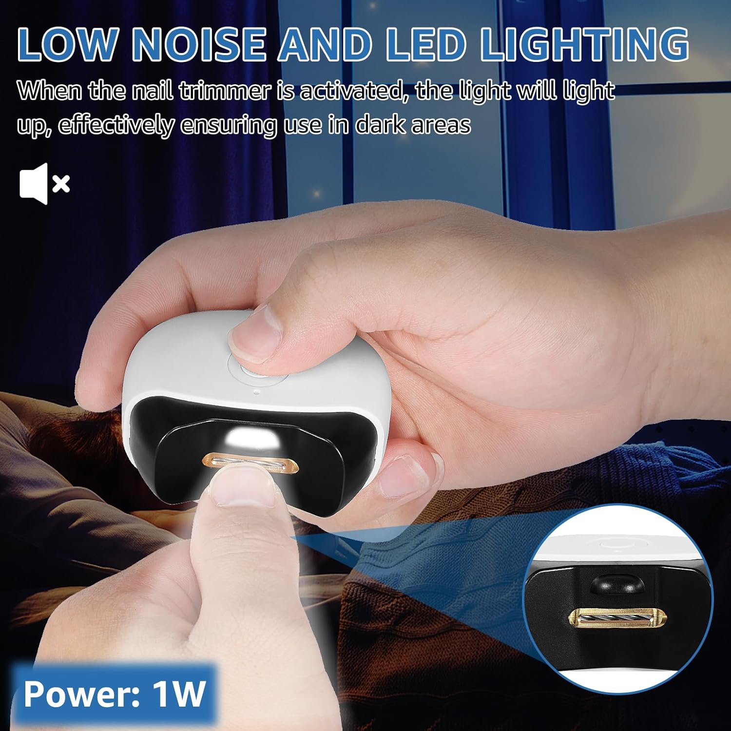 【LED Light Design and Quiet】This electric nail clipper is equipped with a LED light, that will turn on when activate the nail clipper, bringing a clearer vision for nail trimming. Effectively use in the dark areas as well. And the baby nail trimmer has a bass motor that operates quietly when trimming fingernails and toes. Perfect for toddlers and babies who don't like to cut their nails.