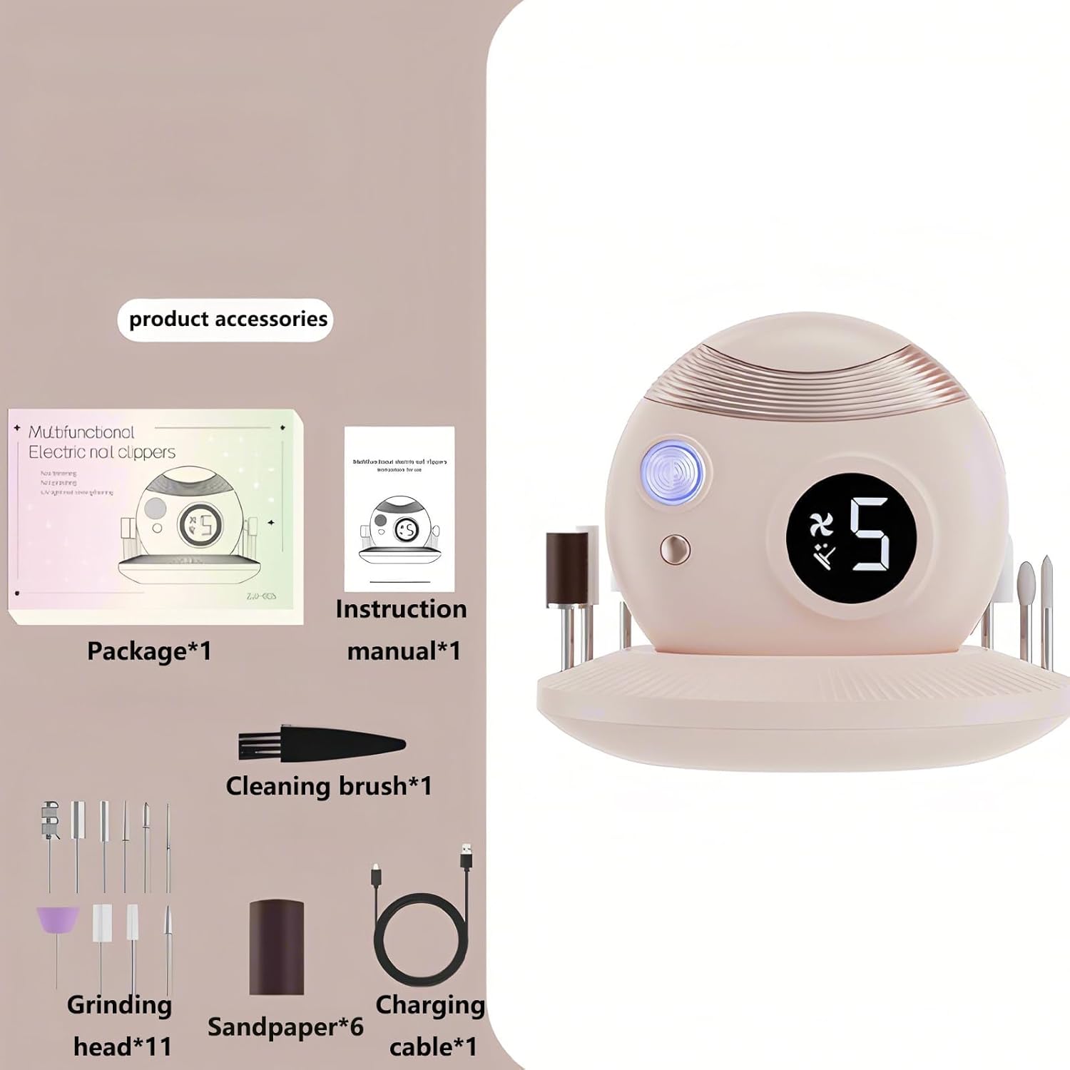 - 【Adjustable Speed And Display】Electric fingernail clipper has two speeds: low speed and high speed. Press the power button to start the device, and then press the power button for 1 second to control the speed of the nail trimmer. Without turning off the device, press the button below the power button to control the speed of the electric nail polisher.Equipped LED display shows the speed, helping you select suitable modes easily