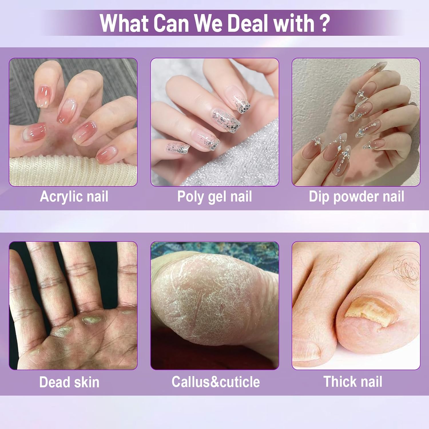 - 5-SPEED ADJUSTMENT AND 35000RPM: Nail filer electric upgraded powerful motor and adjustable speed is perfect for all your manicure and pedicure needs, Including removing acrylic nails, Poly gel nails, beetles gel, dip powder nails, thick nails, etc.