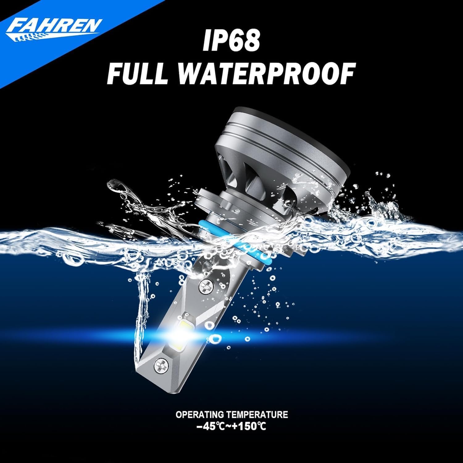 FAHREN H11 H9 LED Headlight Bulbs, 40000LM Super Bright H11 LED Bulb with Canbus Driver, 360° Adjustable Light Angle Halogen Replacement Kit, 6500K White IP68 Waterproof, Pack of 2