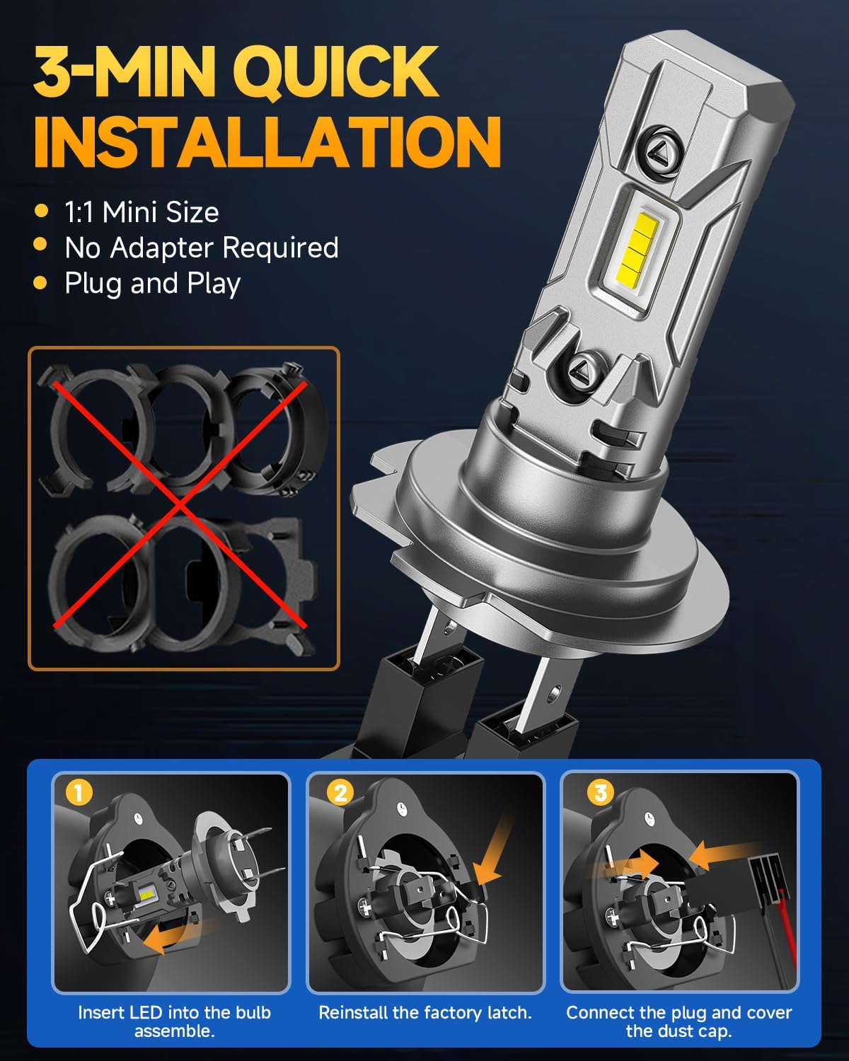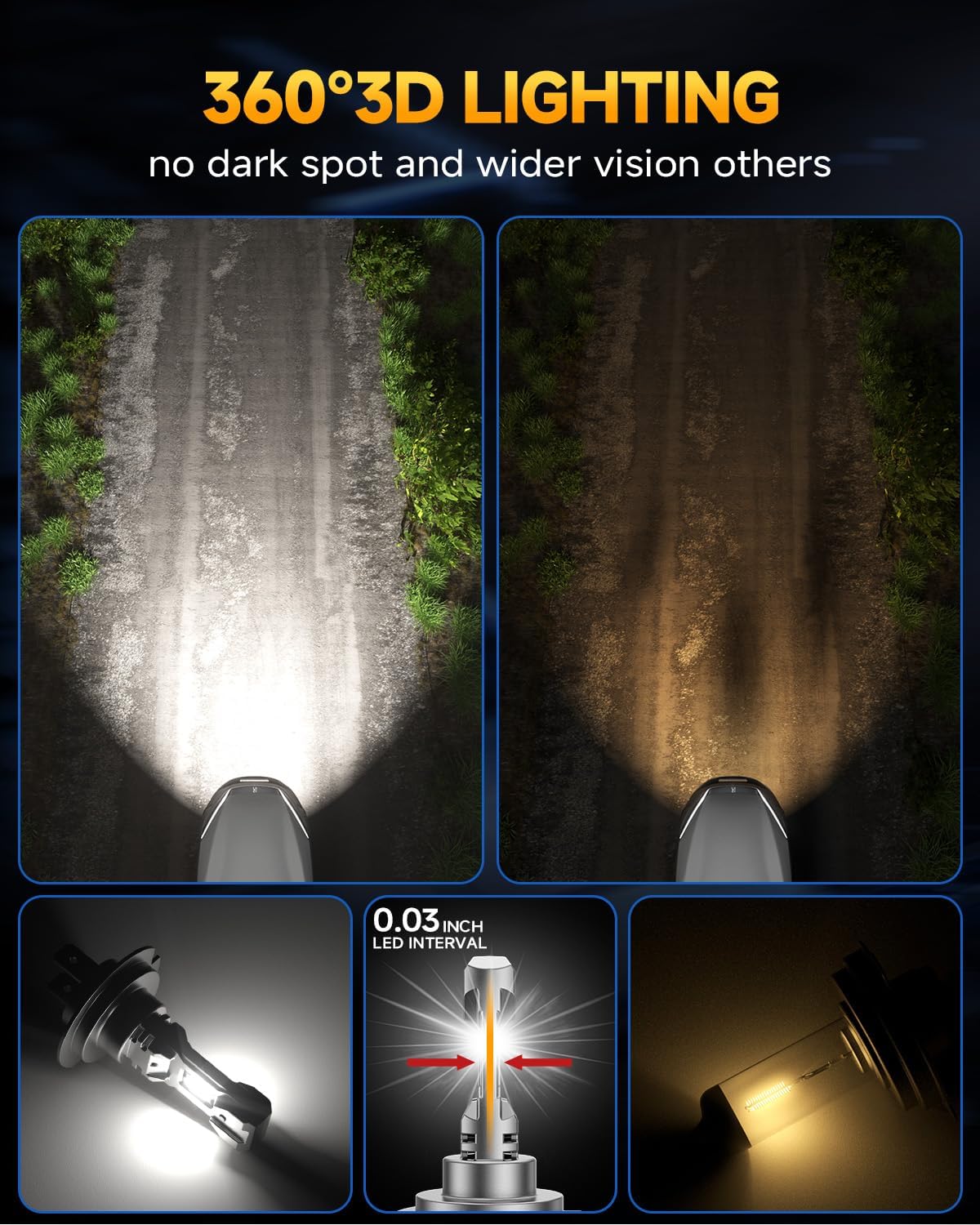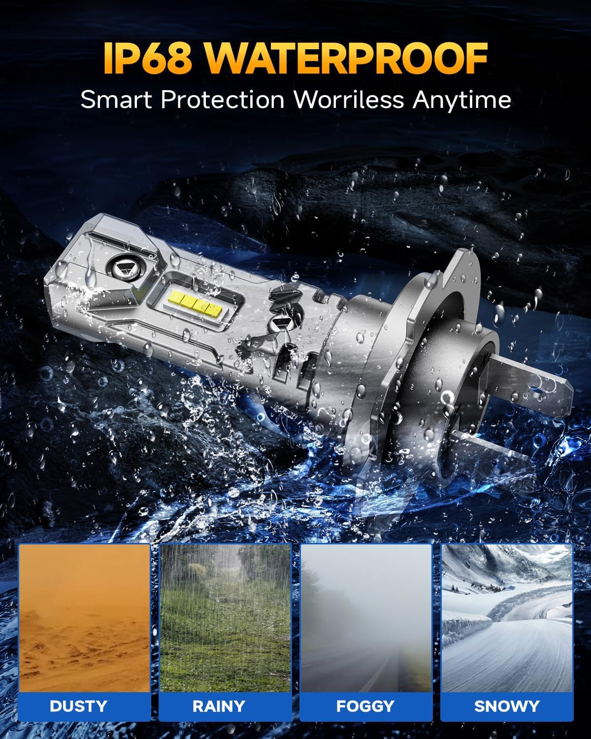 【40000 LM Brightness Upgrade】These H11 LED headlight bulbs utilize the latest, exclusive chips, which outperform is significantly better than halogen lamps, and each pair of bulbs delivers 40,000 lumens of efficient lighting. 6500K cool white light can expand visibility to 1800 feet, allowing you to detect road hazards earlier