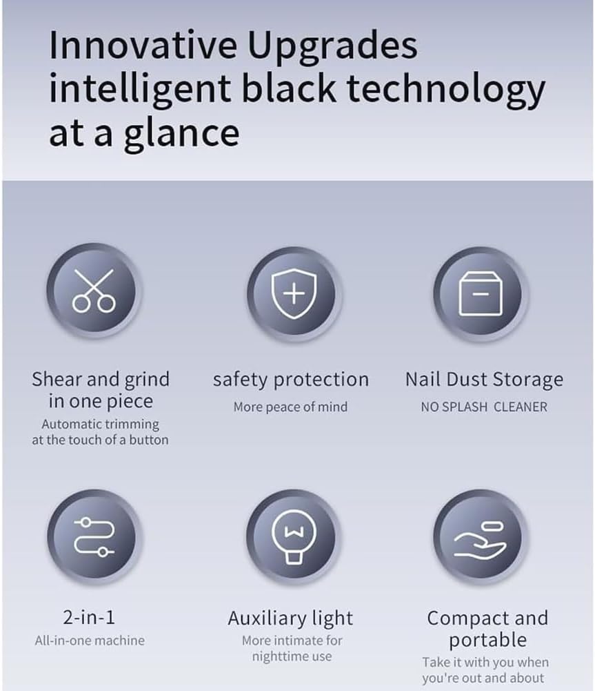 Powerful & Precise Trimming: Equipped with high-end stainless steel blades and advanced motor technology, this automatic nail clipper ensures smooth, rounded nails every time. Its strong cutting power handles tough toenails and fingernails effortlessly, reducing the need for manual effort and preventing uneven edges