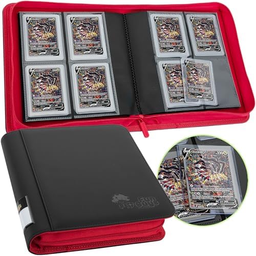 - PREMIUM QUALITY – Experience premium quality with our top loader binder! Featuring 4 pockets per page, holding up to 128 cards. The interior is lined with luxurious black suede, combining a lavish feel with unmatched durability. Don't miss out – secure yours now by clicking "Add to Cart" before supplies run out!