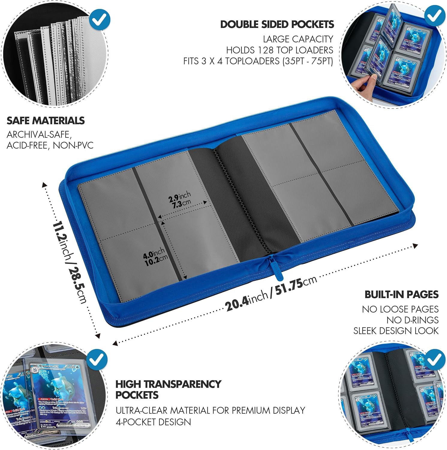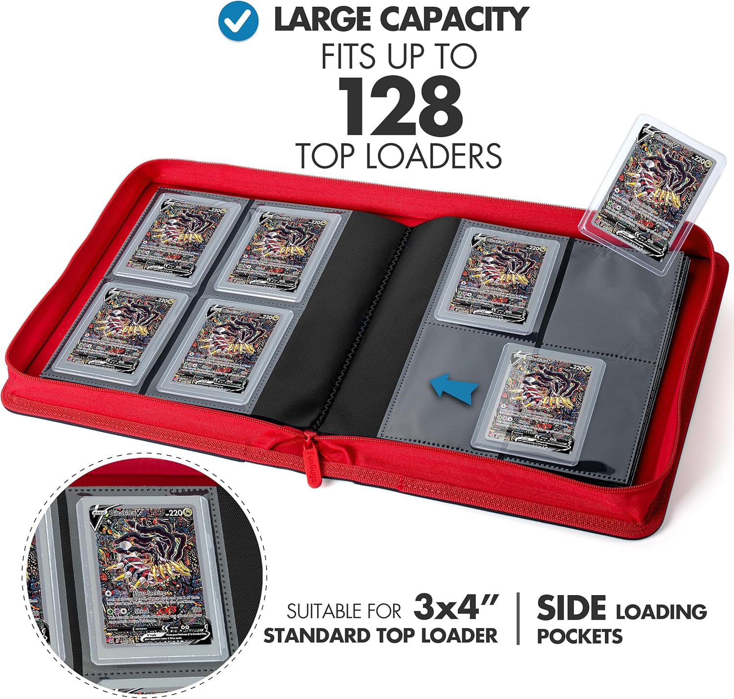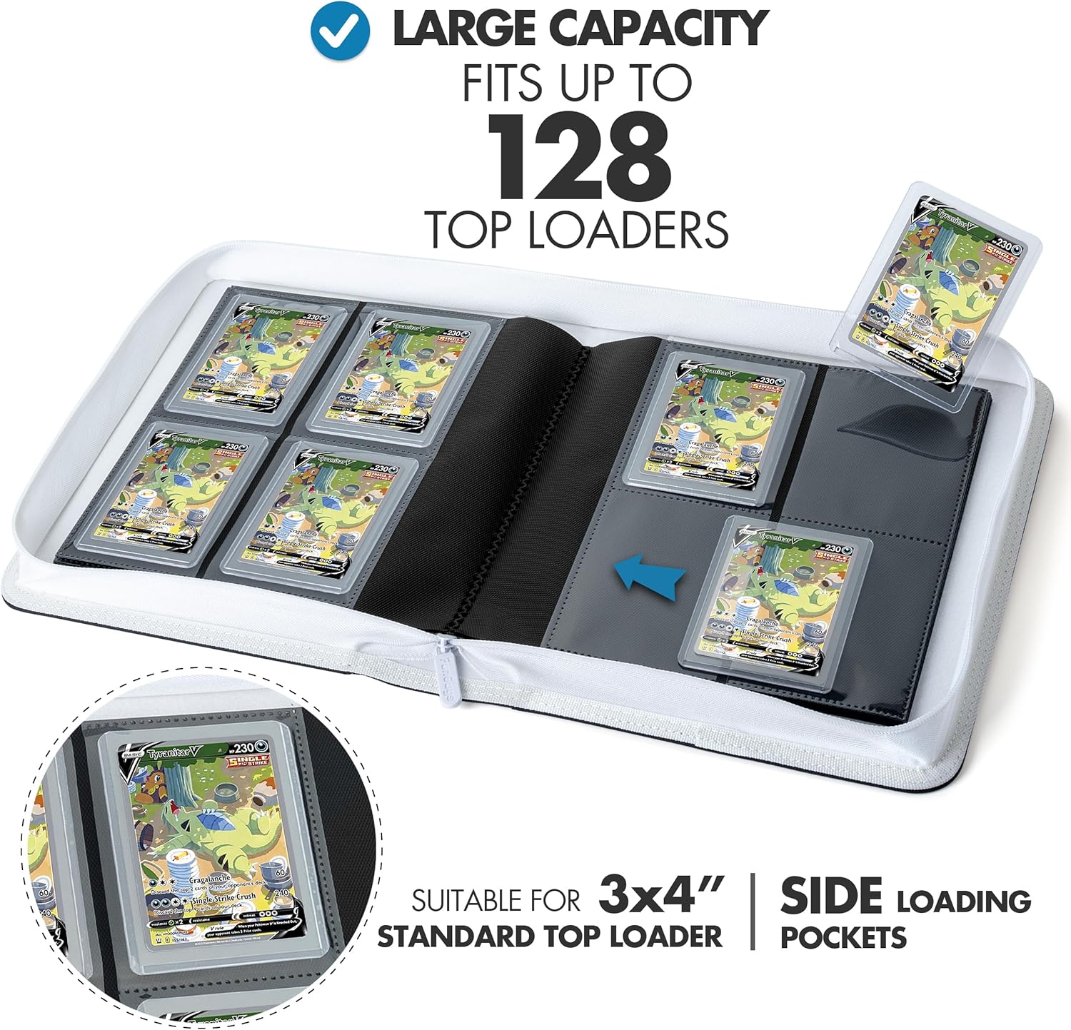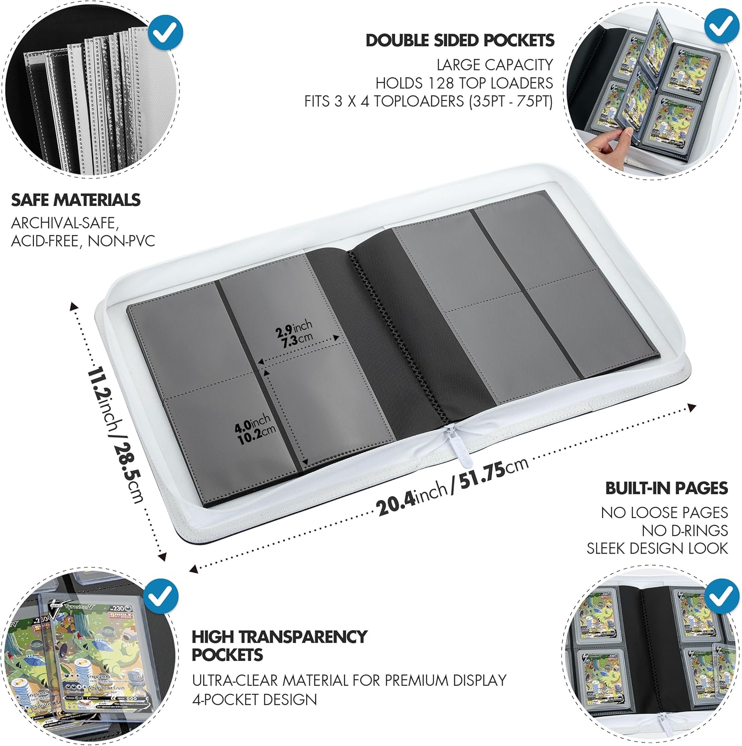 FunGuys Toploader Binder, Trading Card Binder Storage,128 4 Pocket Top Loader Pokemon Binder, Card Collection Yugioh Cards, MTG, TCG, Folders for Trading Cards