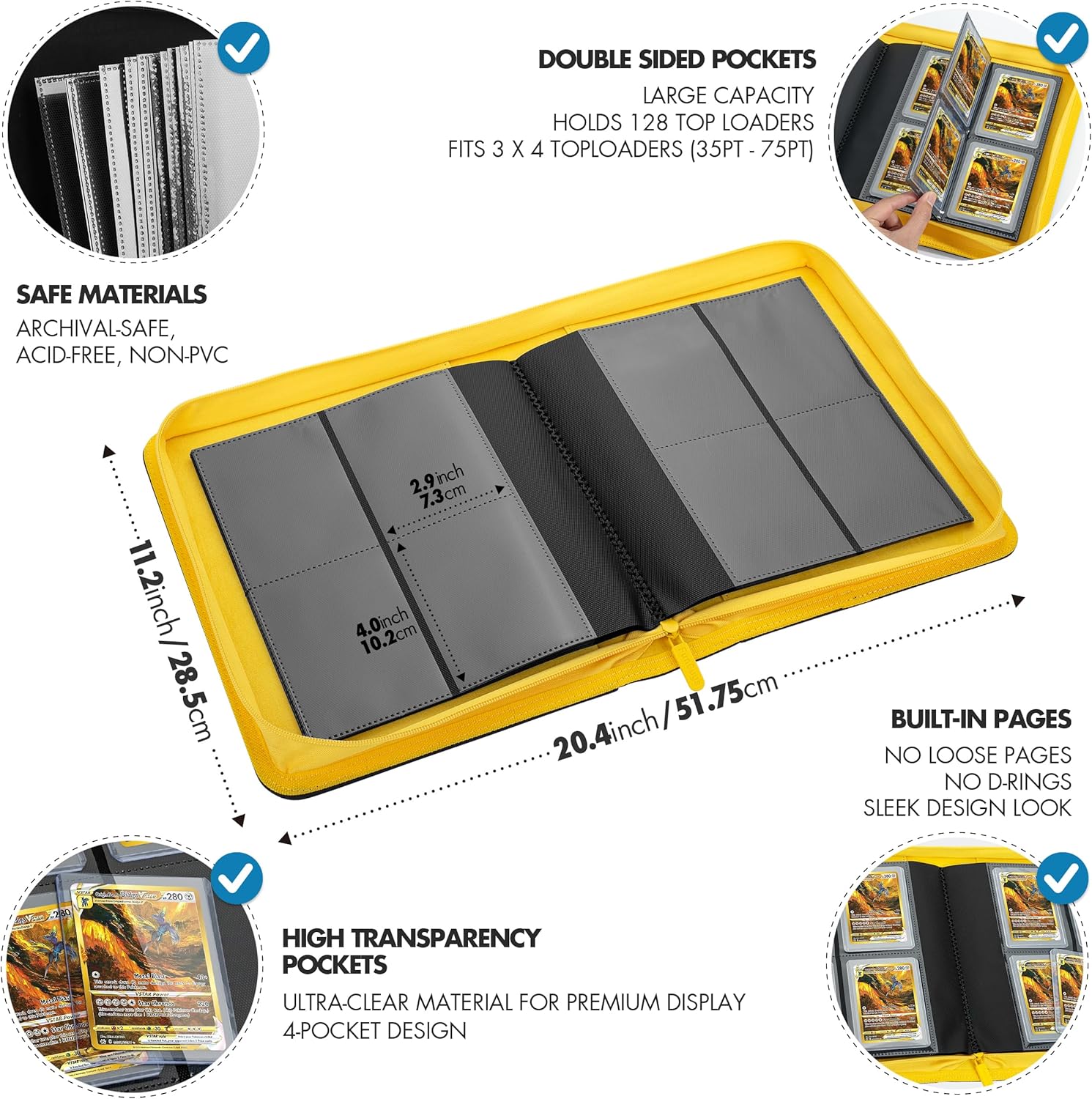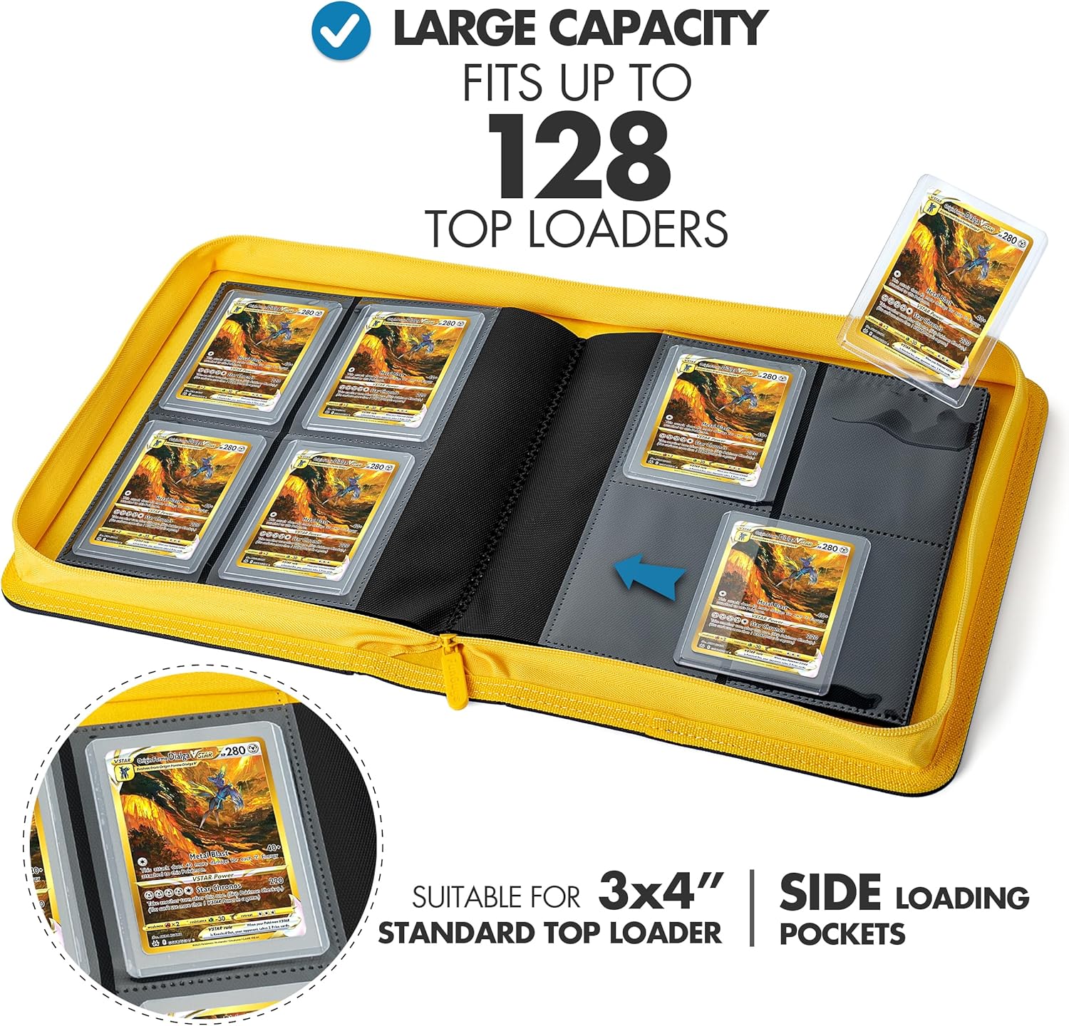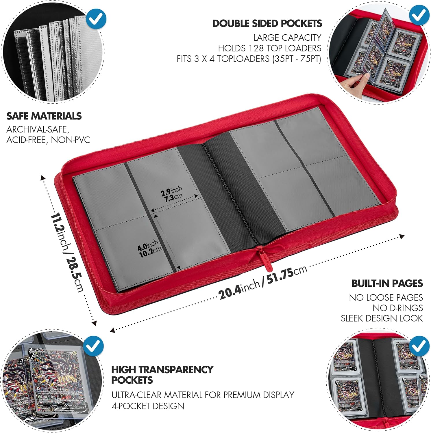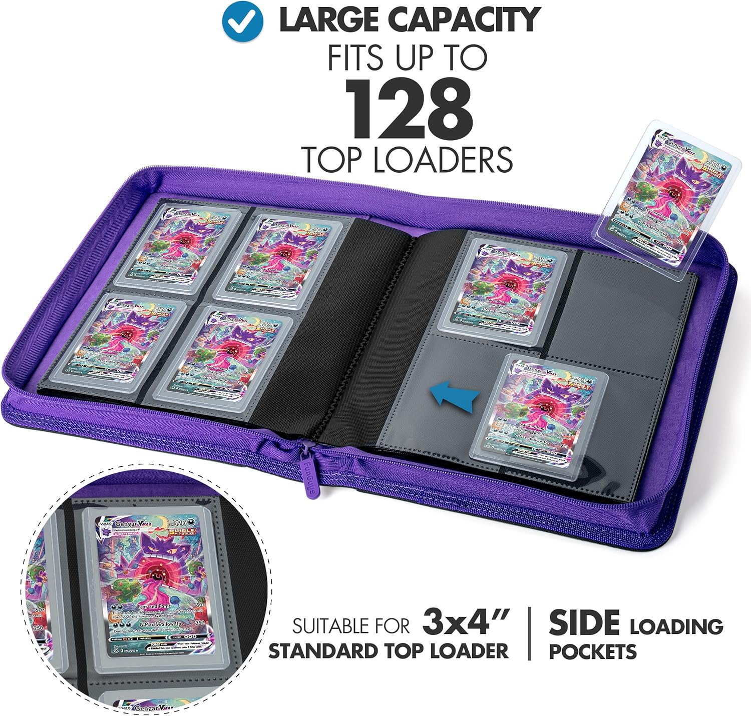 FunGuys Toploader Binder, Trading Card Binder Storage,128 4 Pocket Top Loader Pokemon Binder, Card Collection Yugioh Cards, MTG, TCG, Folders for Trading Cards