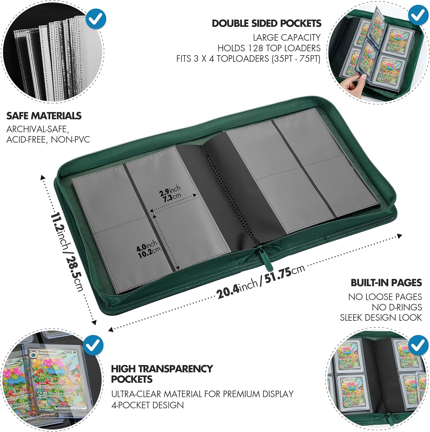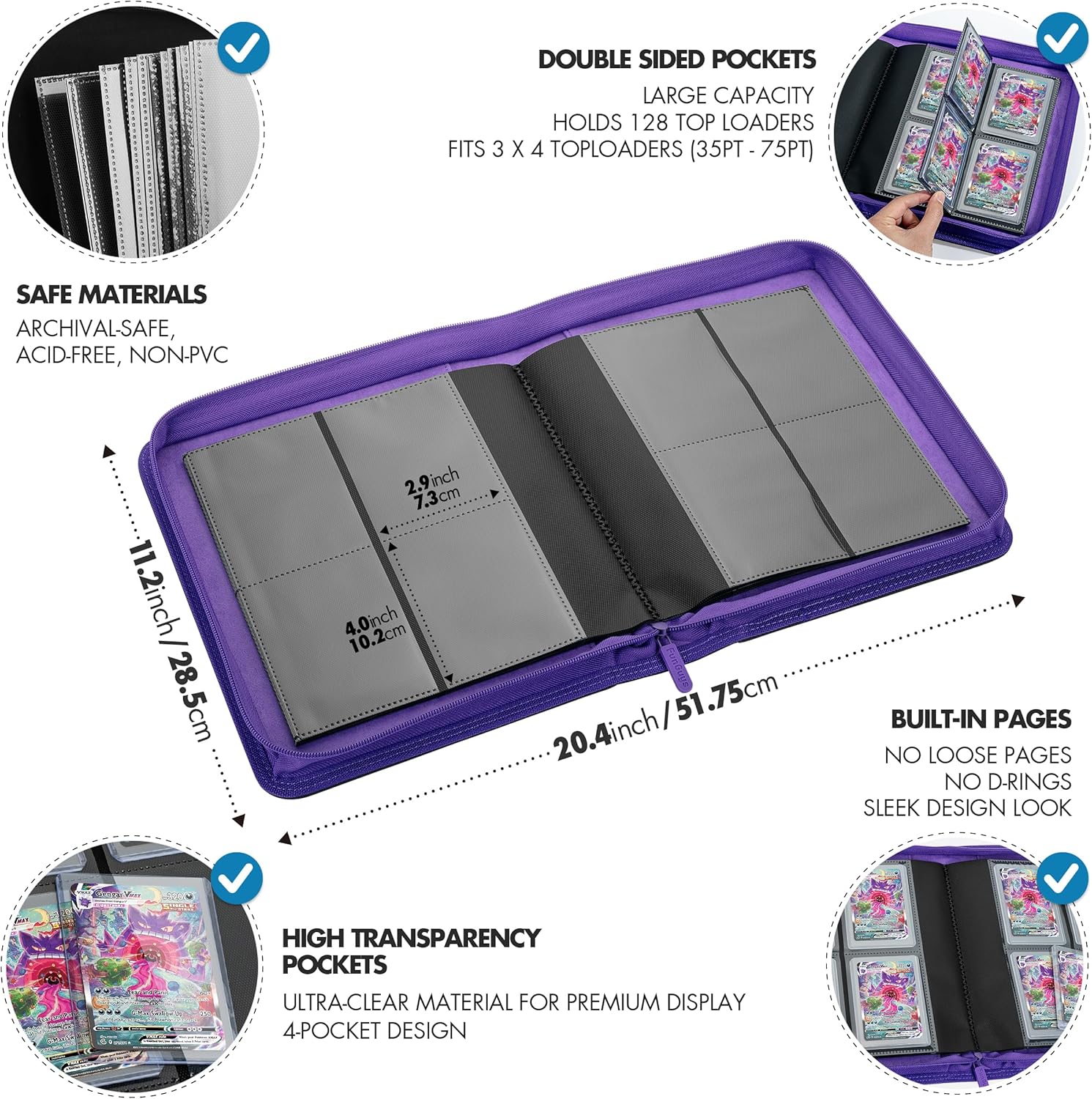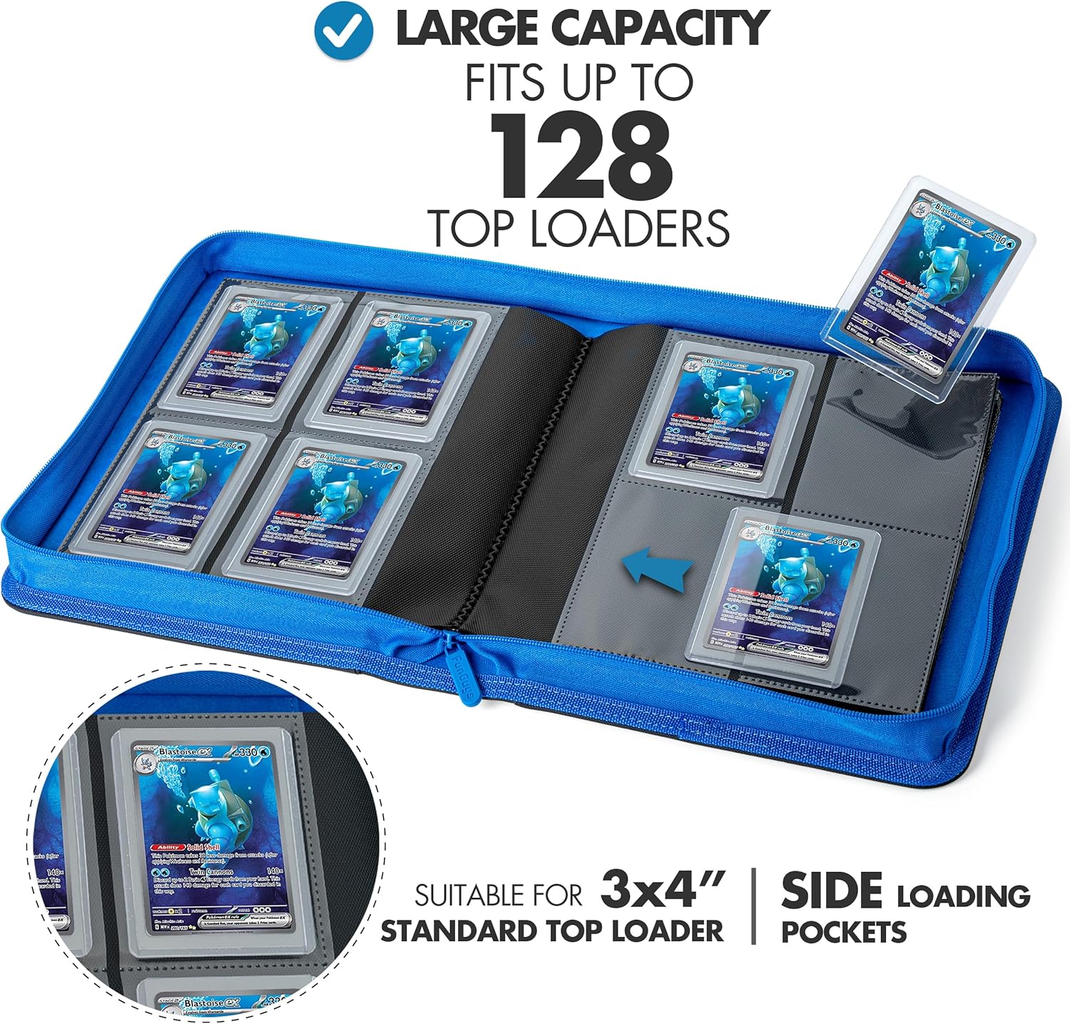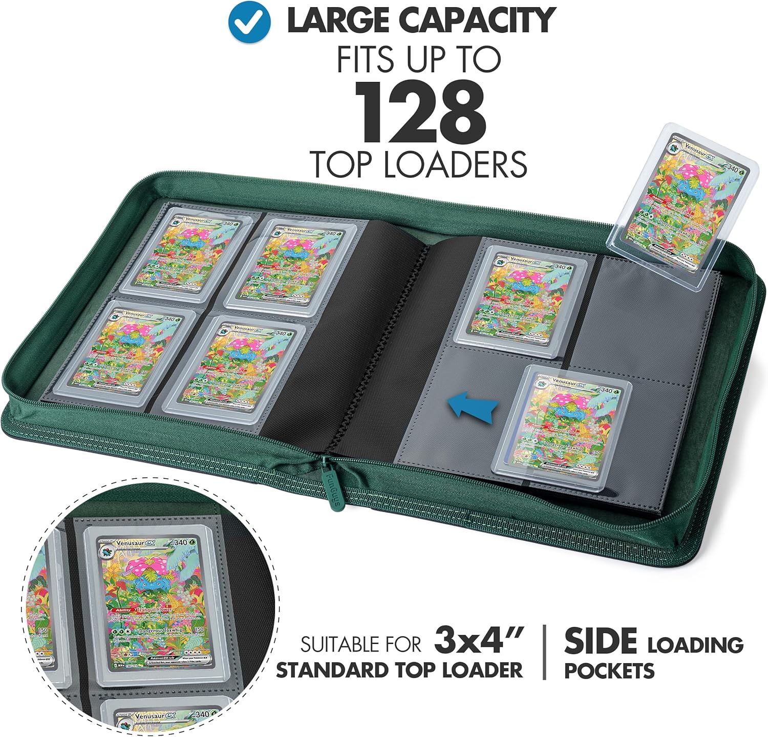 FunGuys Toploader Binder, Trading Card Binder Storage,128 4 Pocket Top Loader Pokemon Binder, Card Collection Yugioh Cards, MTG, TCG, Folders for Trading Cards